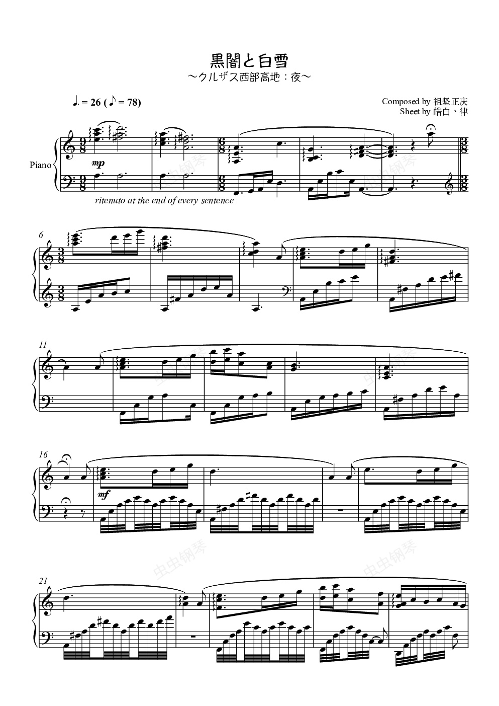 钢琴谱:【FF14】黒闇と白雪 ~クルザス西部高地:夜~