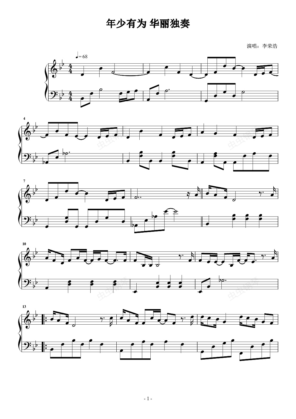 钢琴谱:年少有为 华丽独奏