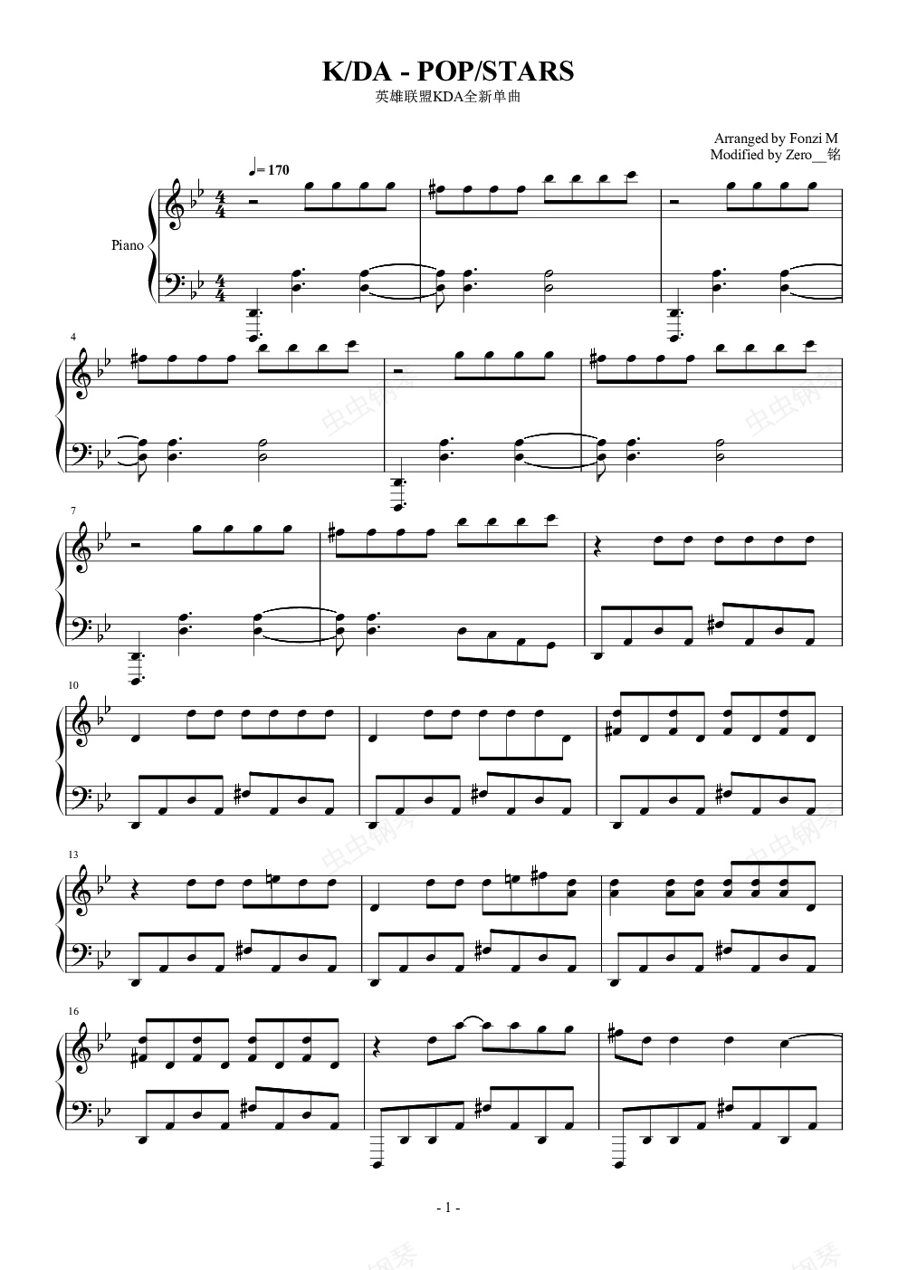 钢琴谱:【英雄联盟】KDA - POP STARS——S8全球总决赛 开场曲