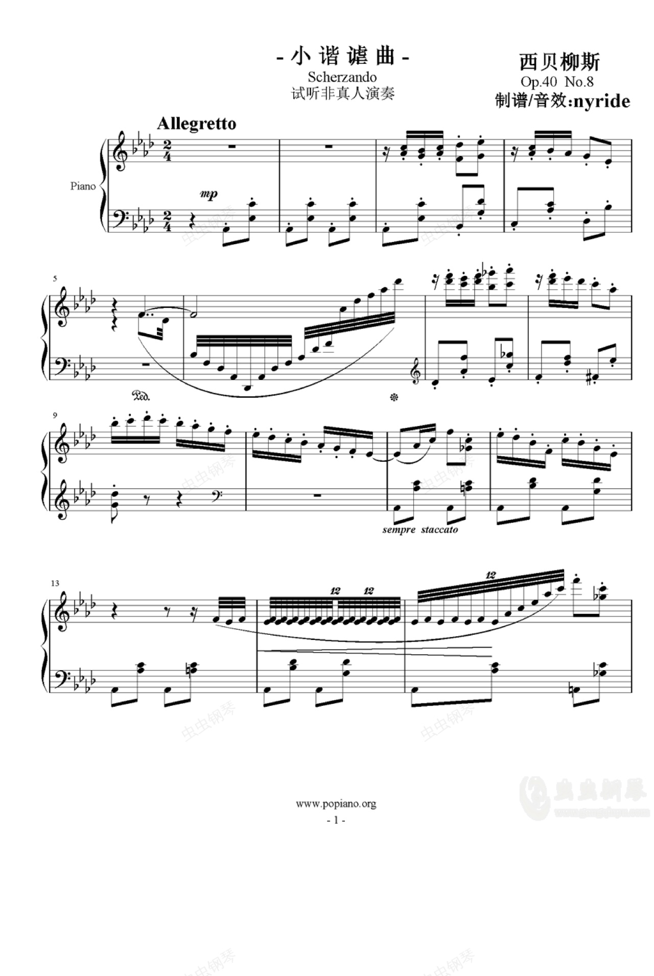 钢琴谱:西贝柳斯《小谐谑曲》Op.40  No.8