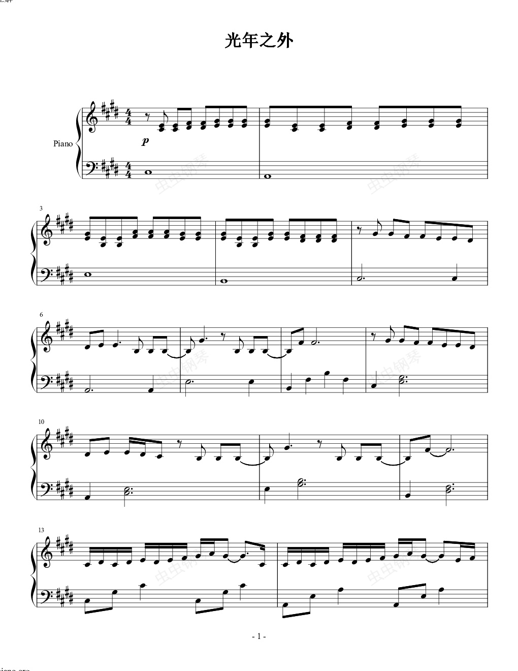 钢琴谱:光年之外