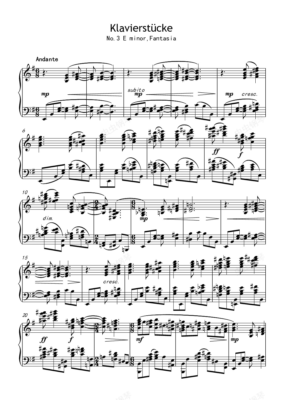 钢琴谱:幻想曲,钢琴曲4首,Op3no3