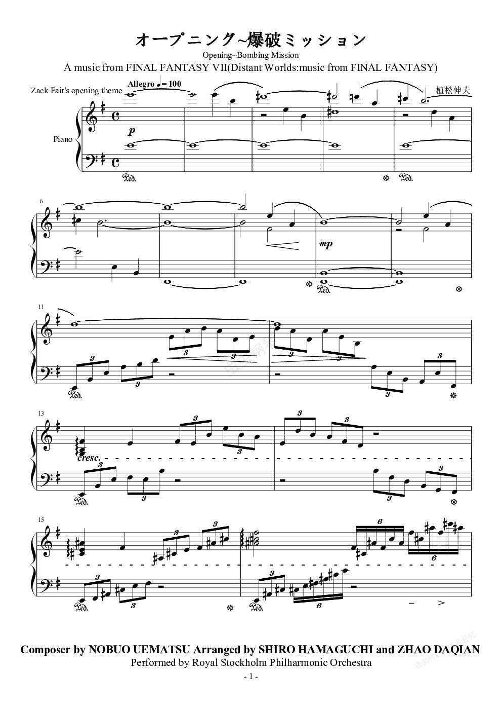 改编自《最终幻想交响音乐会CD Vol.1》(:music from FINAL)首曲我们看过《最终幻想VII:危机核心》( CORE - FINAL VII)的开场动画才知道,该游戏的开场音乐时长有一分多钟。此外,还有《最终幻想VII:降临之子》(FINAL VII -)这部电影中,也有这首开场音乐。这里的歌曲,是由皇家斯德哥尔摩爱乐乐团(Royal)演奏的交响乐版本。