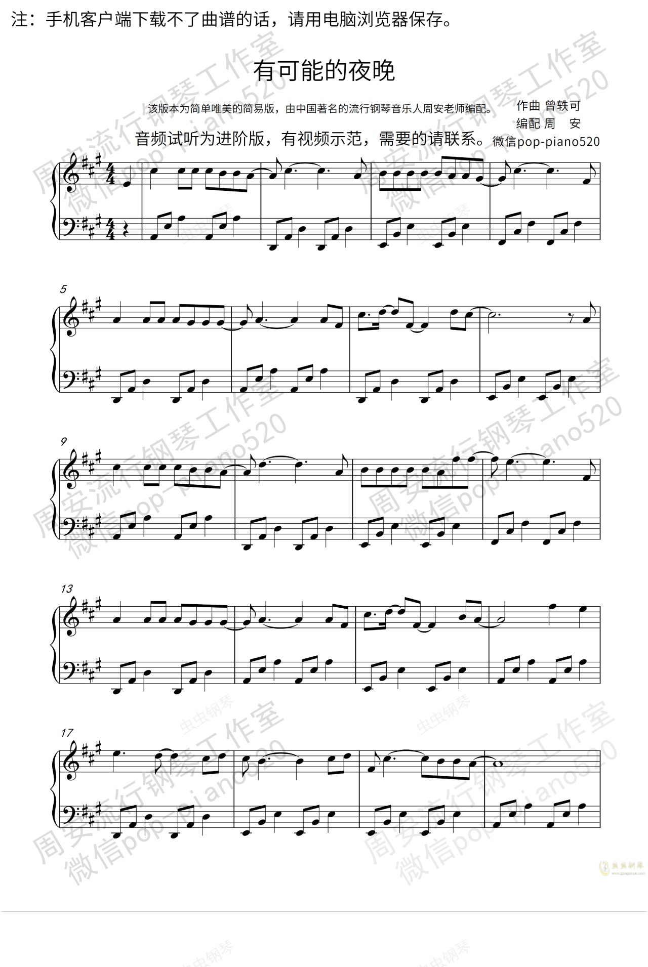钢琴谱:《有可能的夜晚》唯美钢琴版(周安老师)