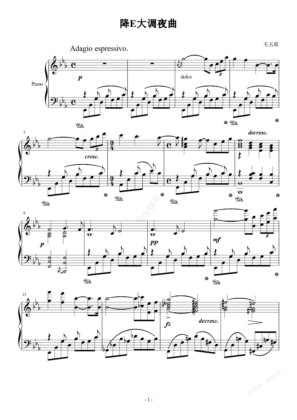 钢琴谱:降E大调夜曲
