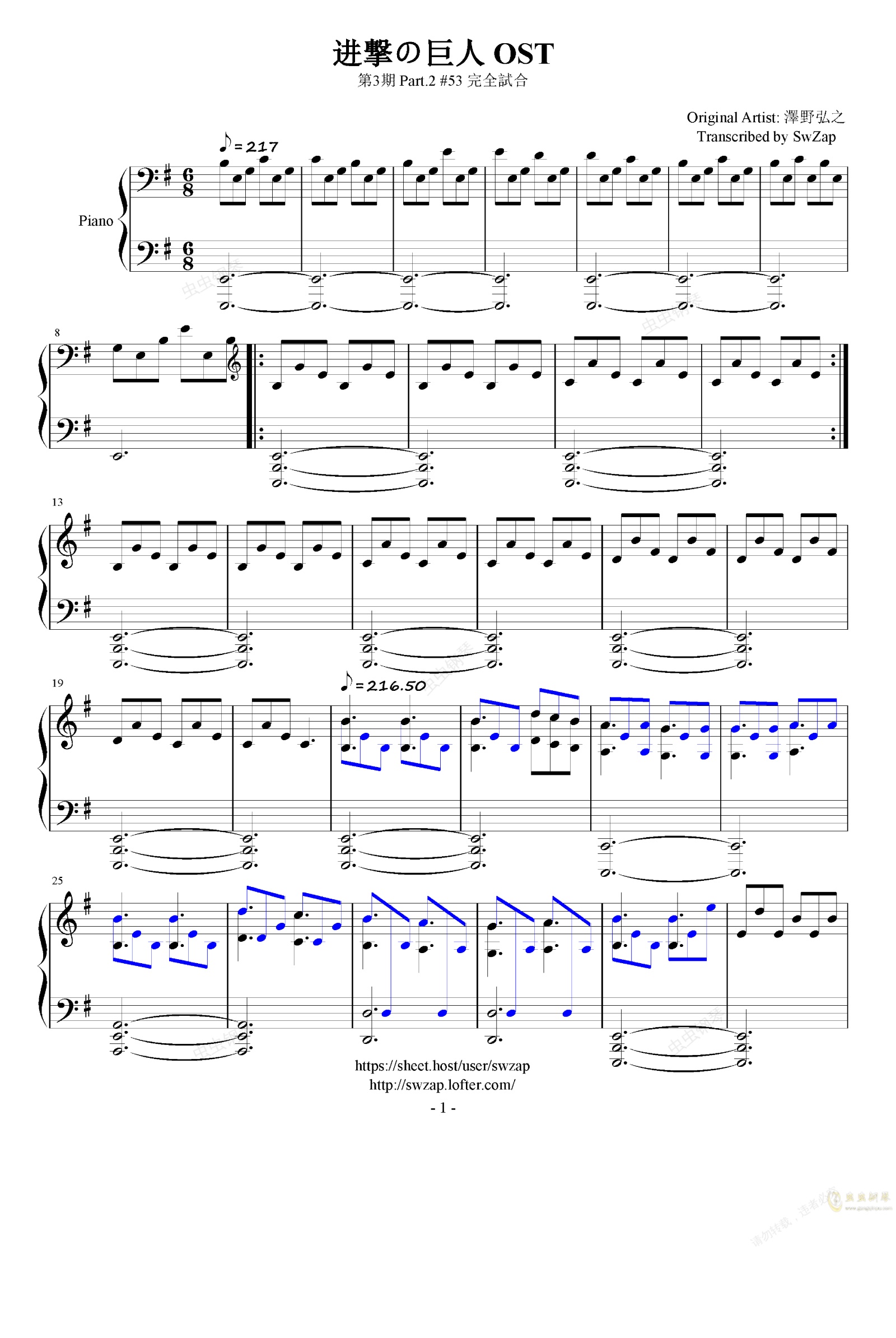 钢琴谱:《进击的巨人》第53话OST:团长演讲的BGM