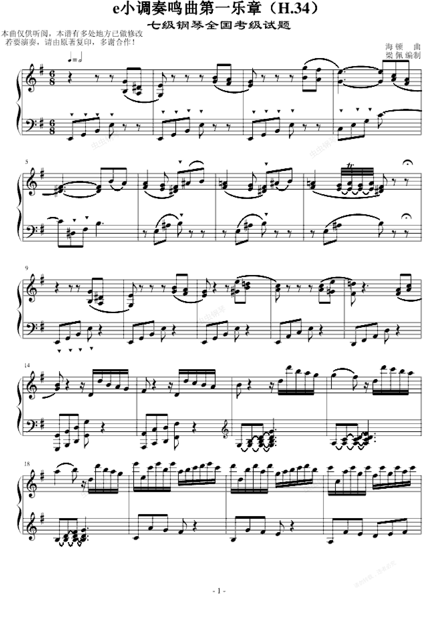 钢琴谱:e小调奏鸣曲第一乐章