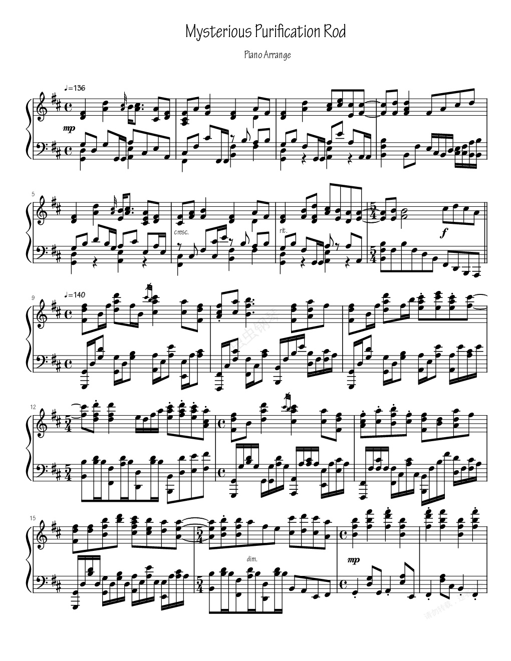 钢琴谱:【东方辉针城】不可思议的驱魔棒