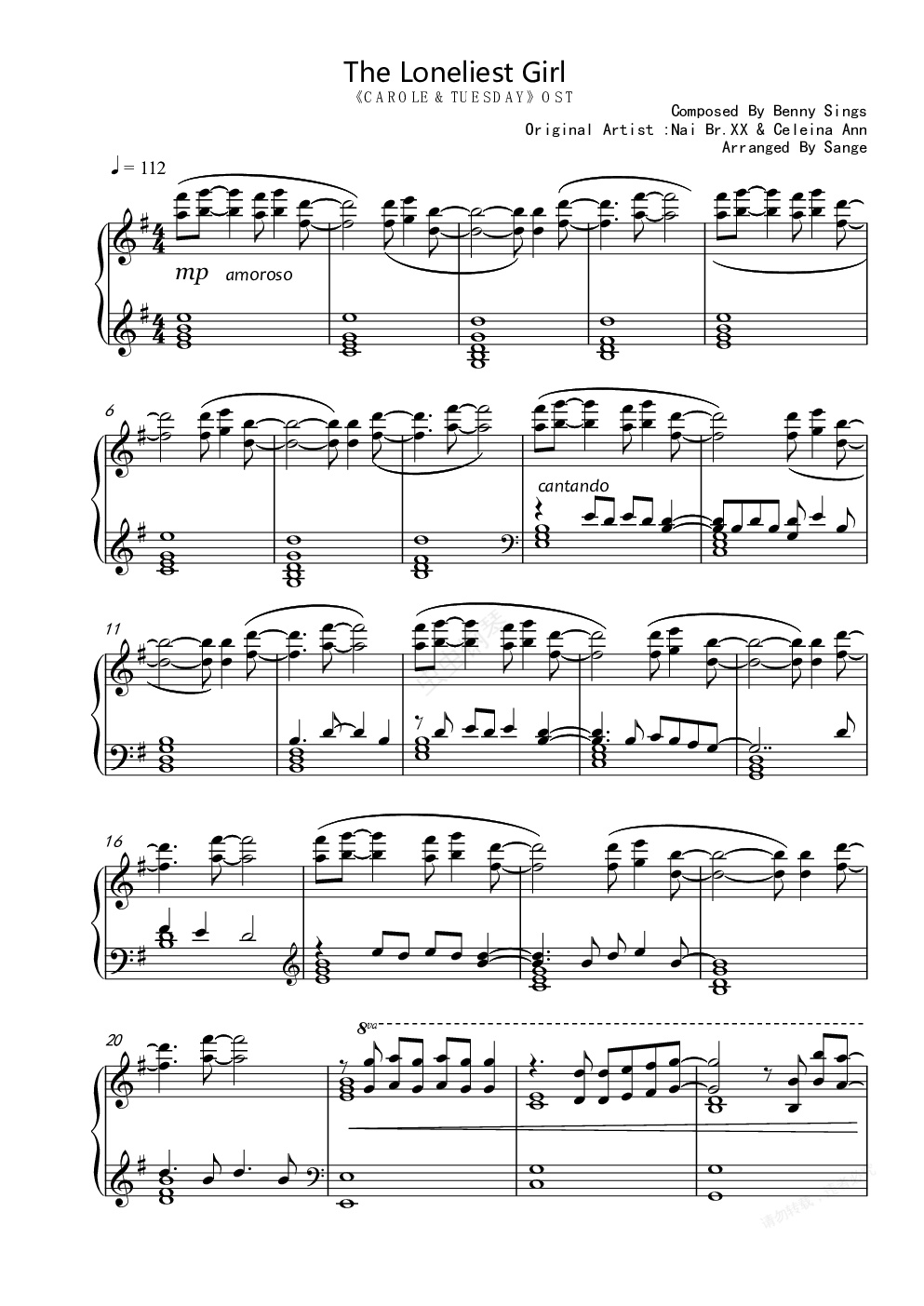 钢琴谱:【CAROLE&TUESDAY】The Loneliest Girl 高还原度