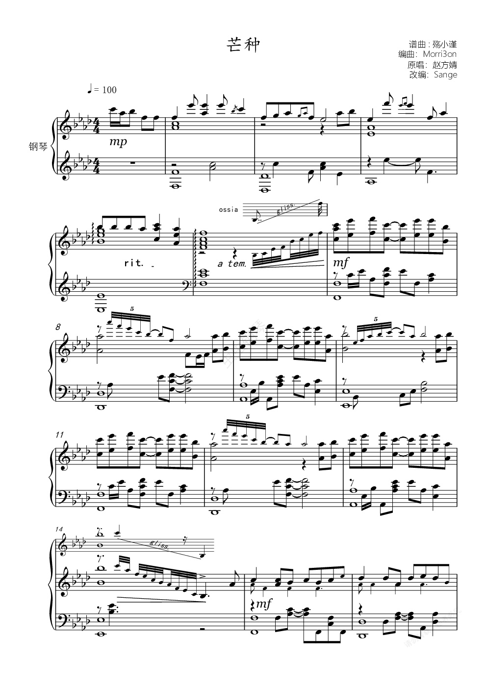 钢琴谱:《芒种》唯美超高还原(很难)