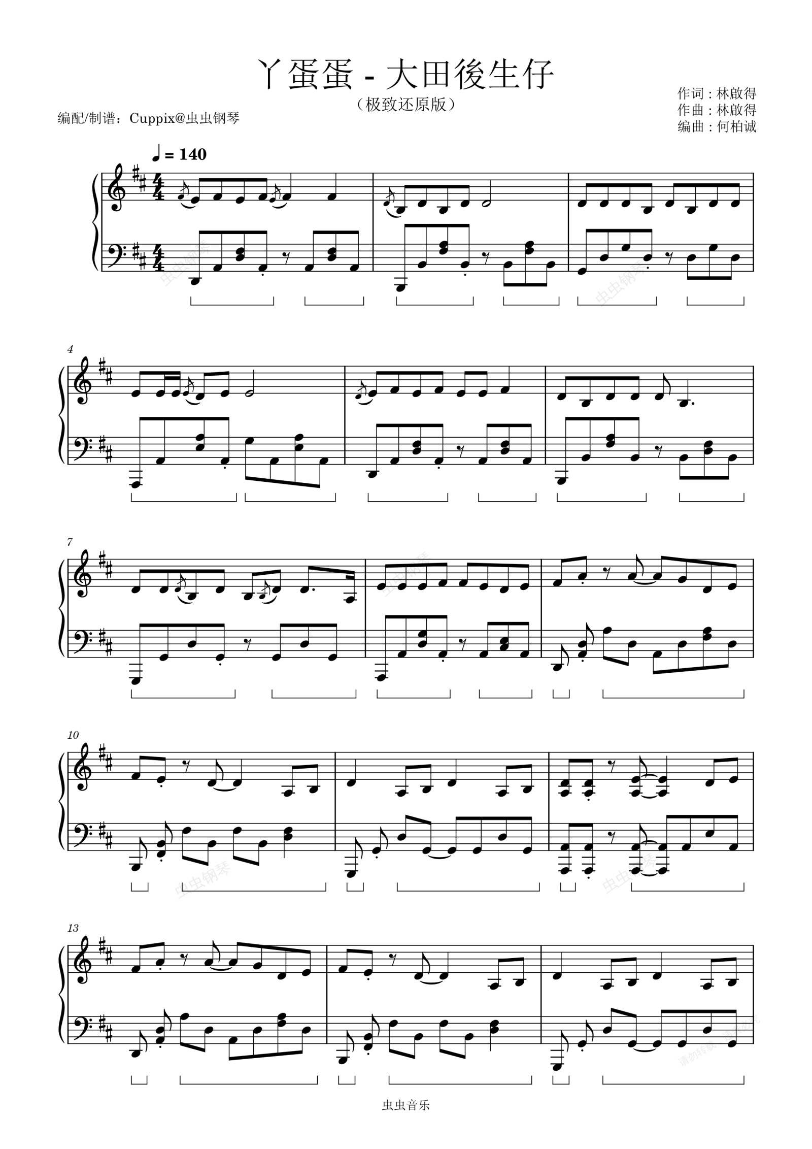 欢乐加速版的大田后生仔,除了换和弦的地放松踏板,其余小节内部需要松踏板的地方我都标注好了。希望大家喜欢。