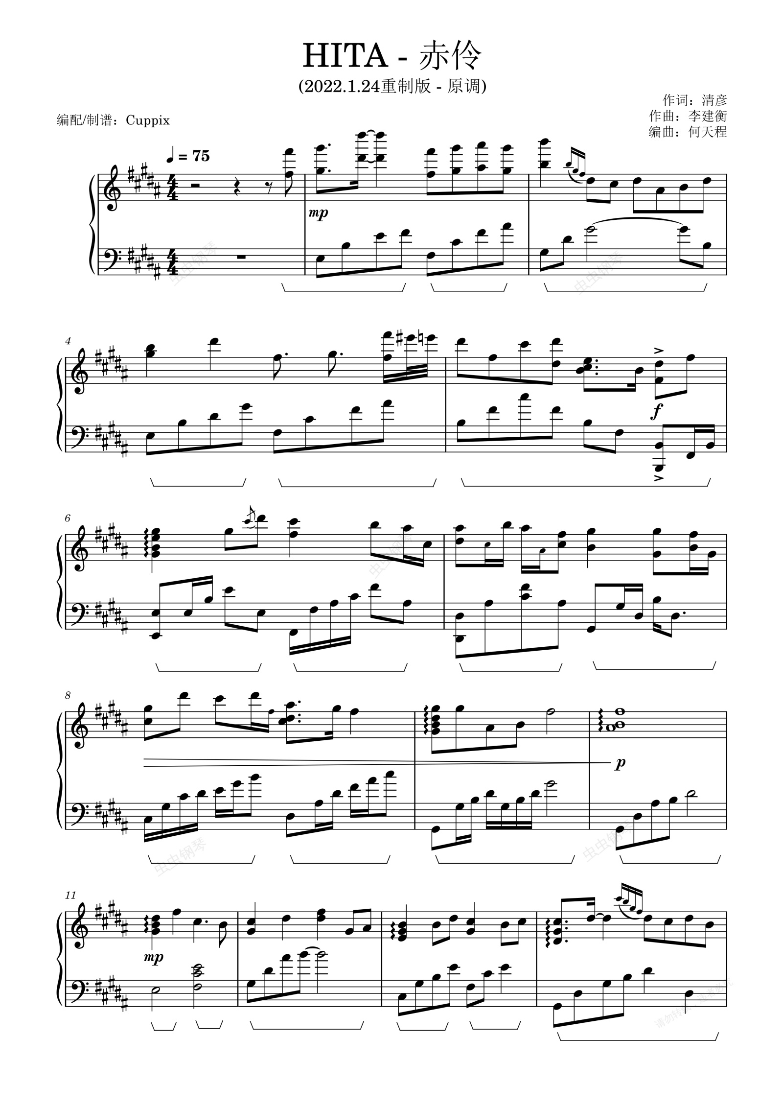 钢琴谱:HITA《赤伶》Cuppix编配-唯美高度还原-原调