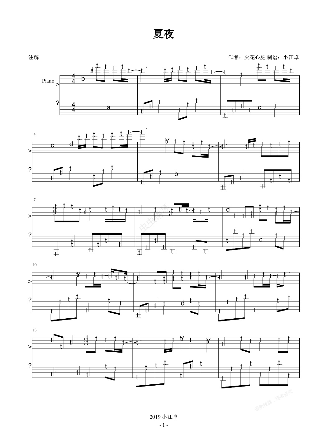 钢琴谱:夏夜(한 여름 밤에/On a Summer Night)