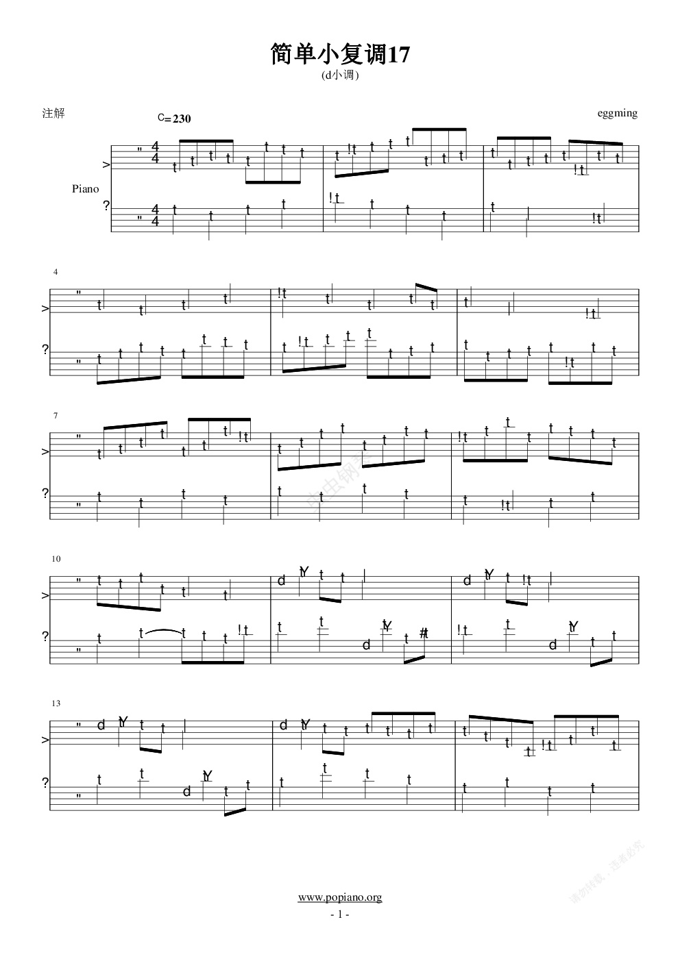 钢琴谱:简单小复调17