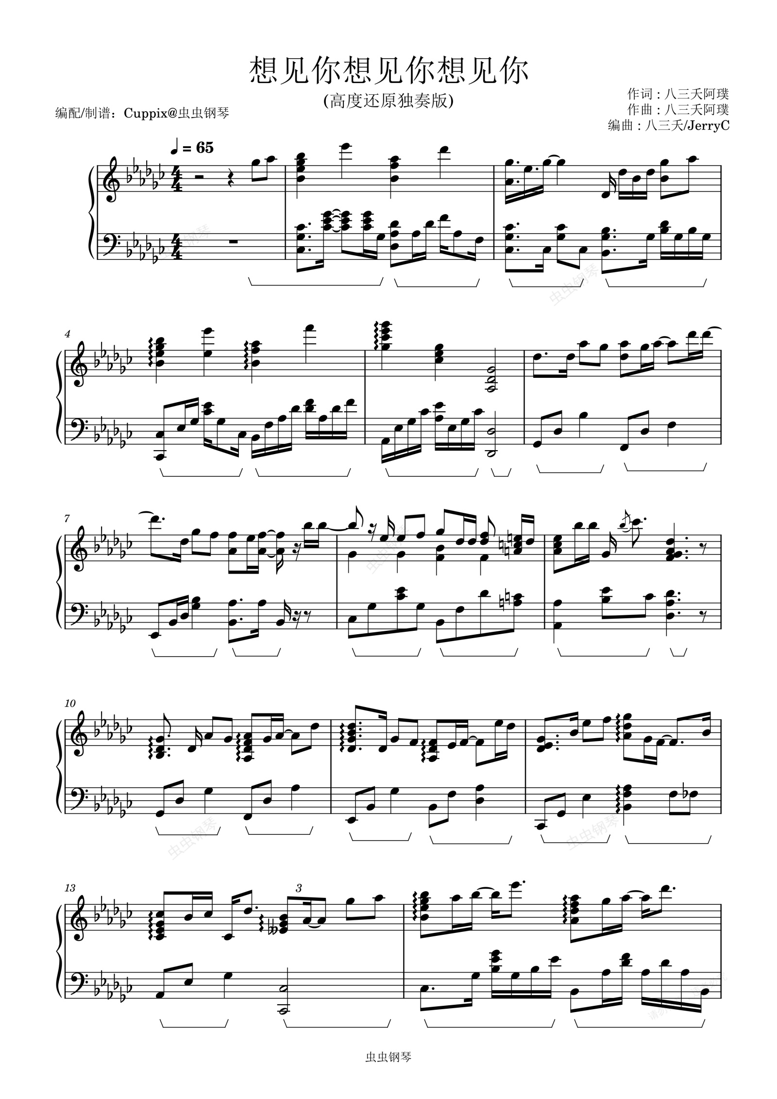 钢琴谱:想见你想见你想见你(高度还原)(Cuppix编配)