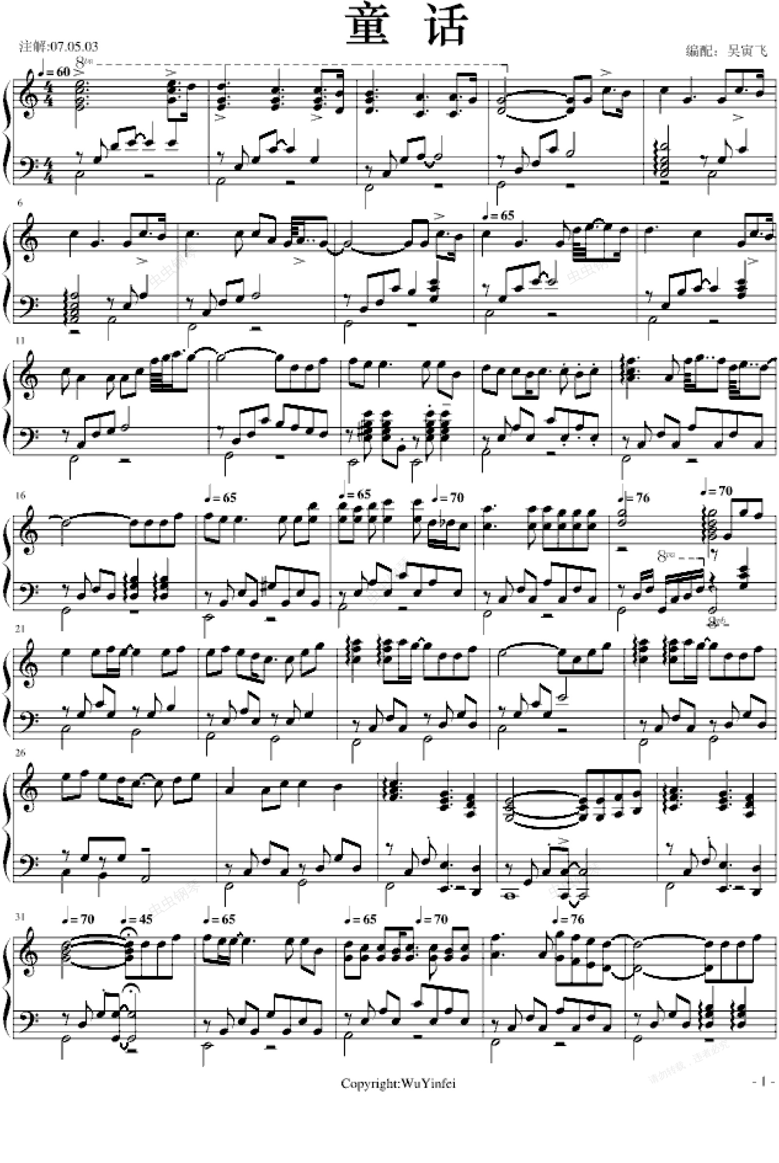 钢琴谱:童话-吴寅飞版