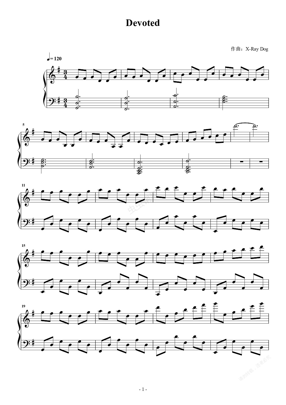 钢琴谱:Devoted - X-Ray Dog