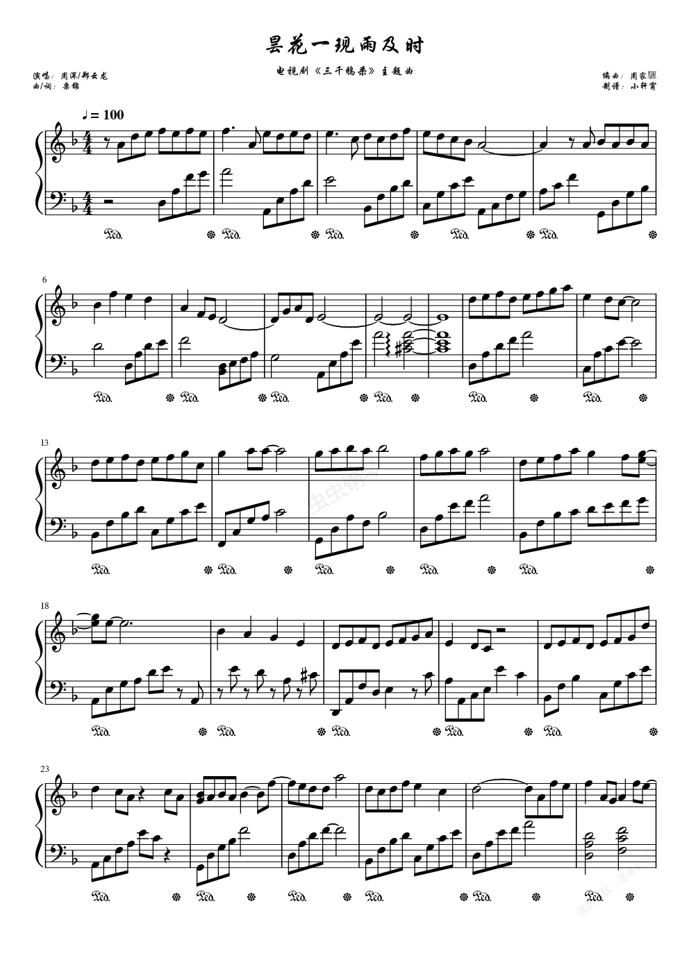 钢琴谱:昙花一现雨及时——《三千鸦杀》主题曲