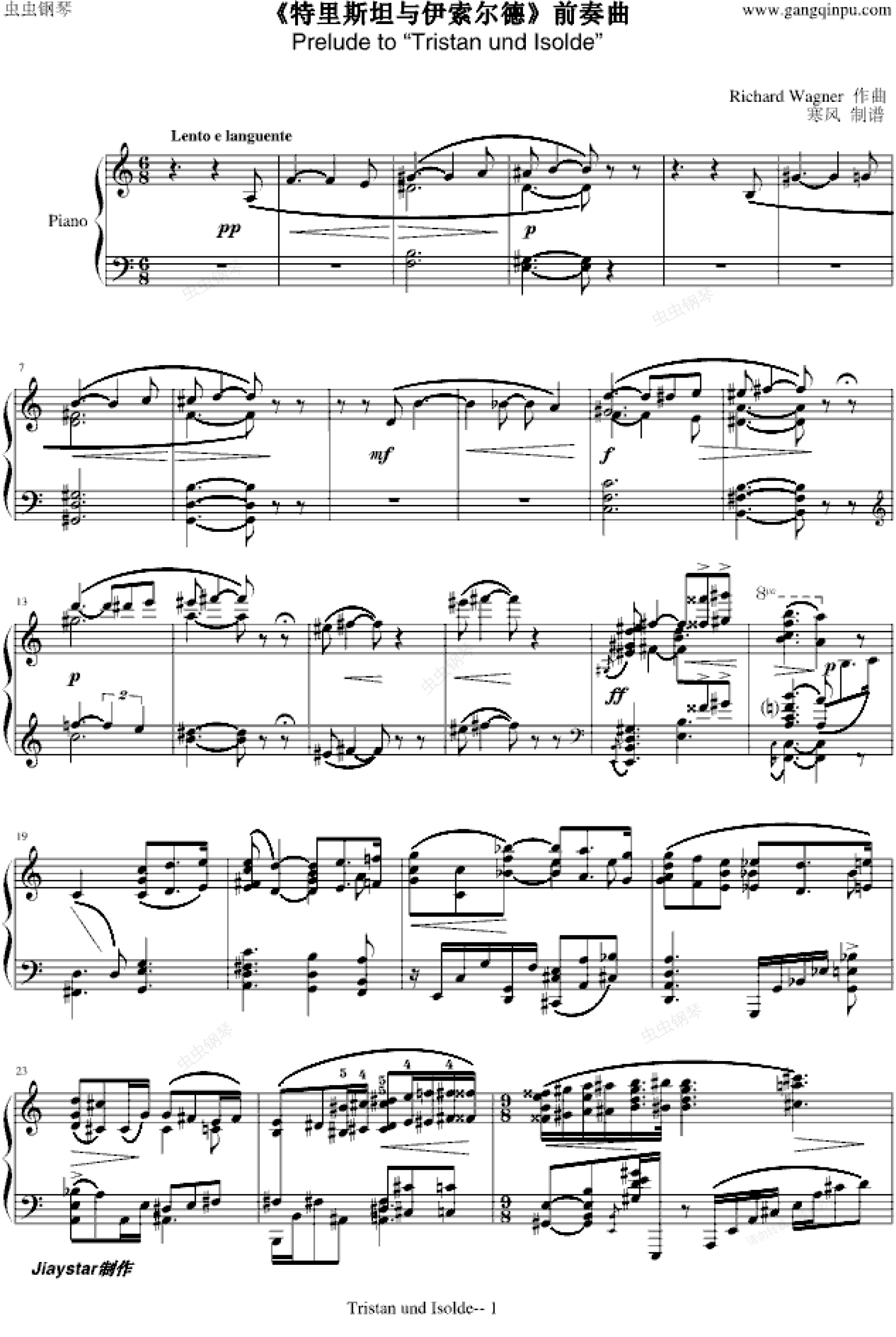 钢琴谱:瓦格纳《特里斯坦与伊索尔德》前奏曲