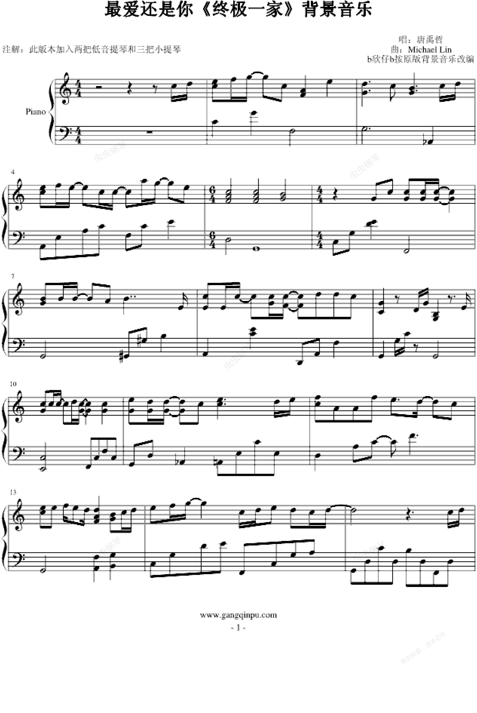 钢琴谱:最爱还是你-《终极一家》背景音乐