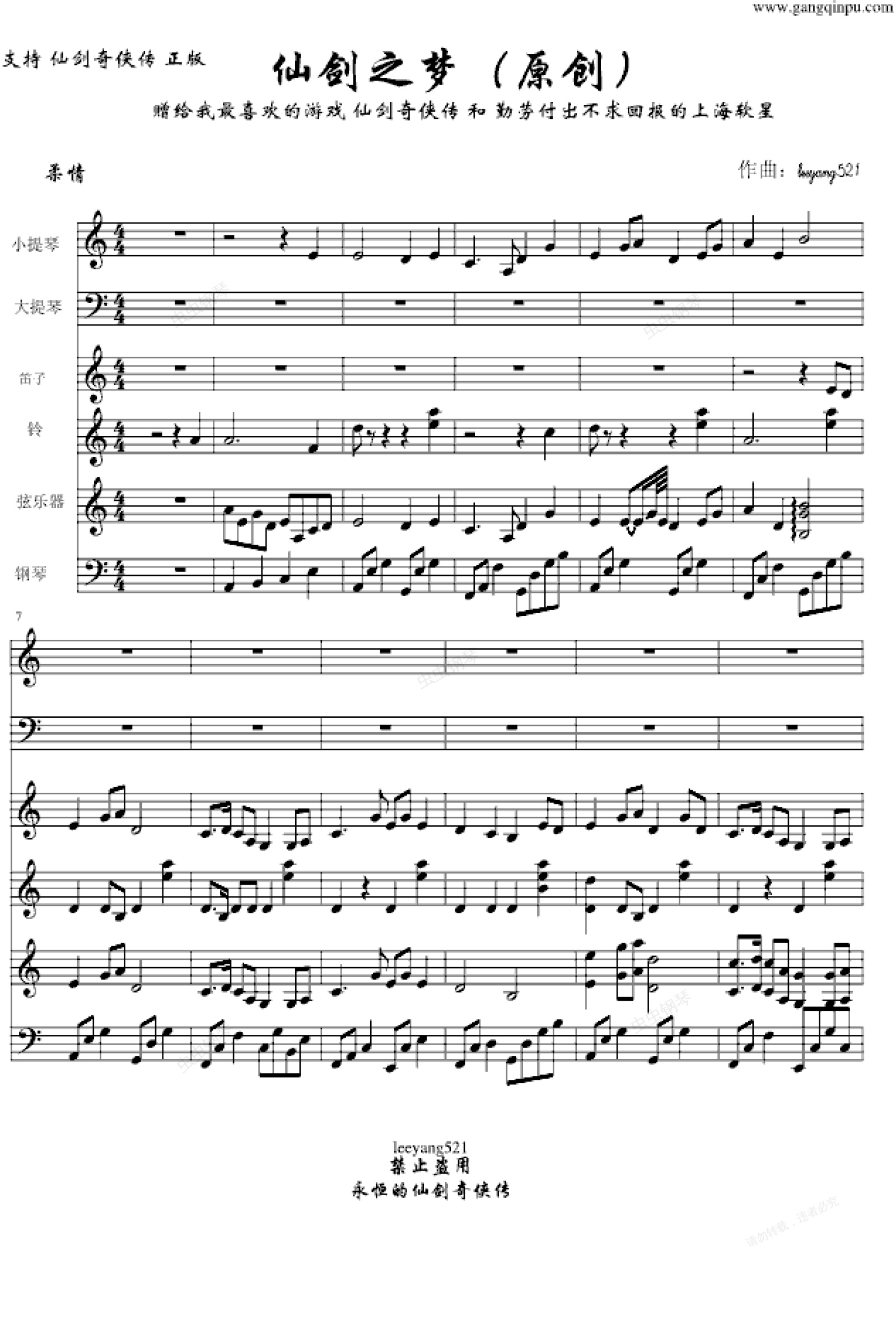 钢琴谱:仙剑之梦
