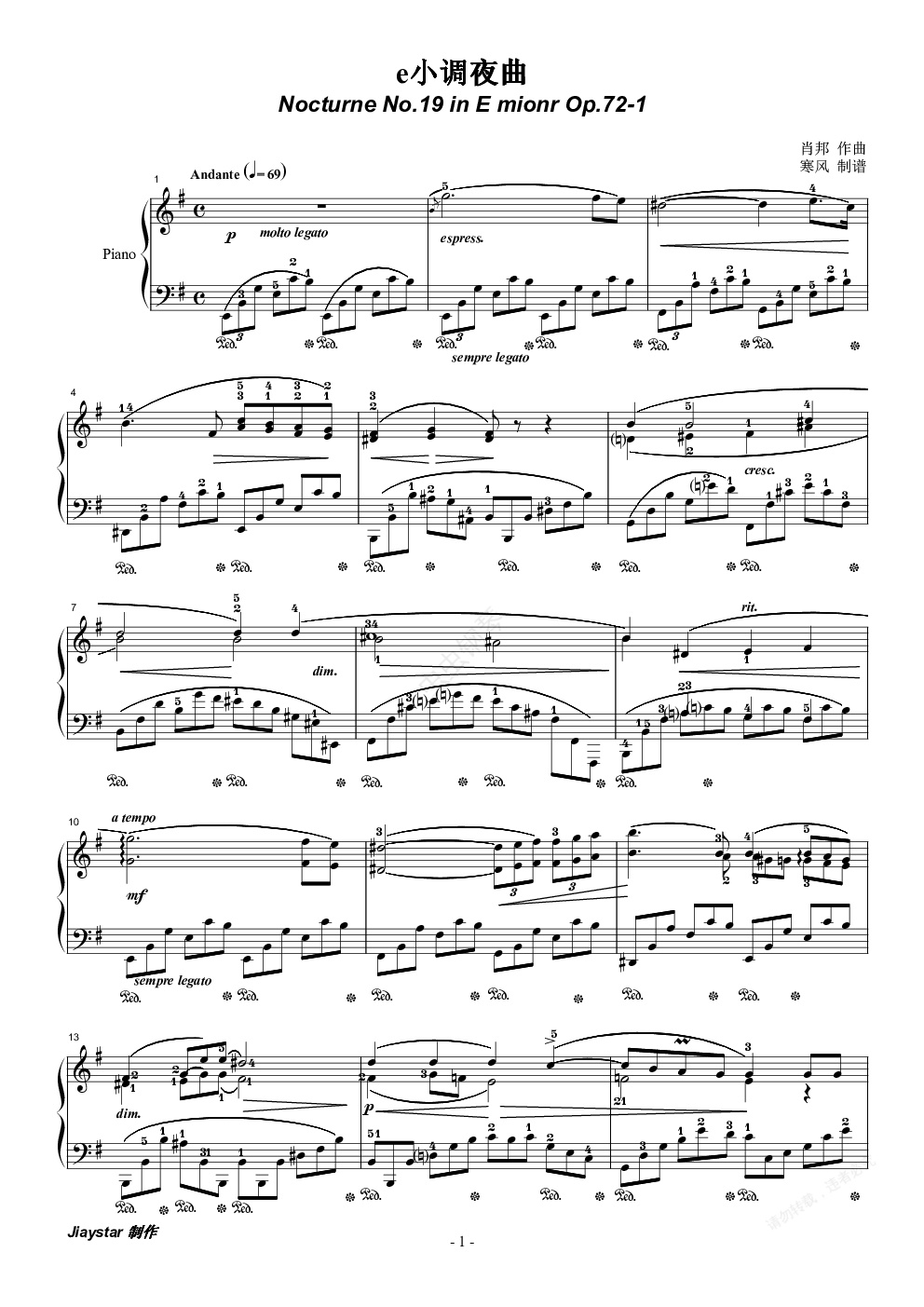 肖邦夜曲19-e小调夜曲(OP.72-1)