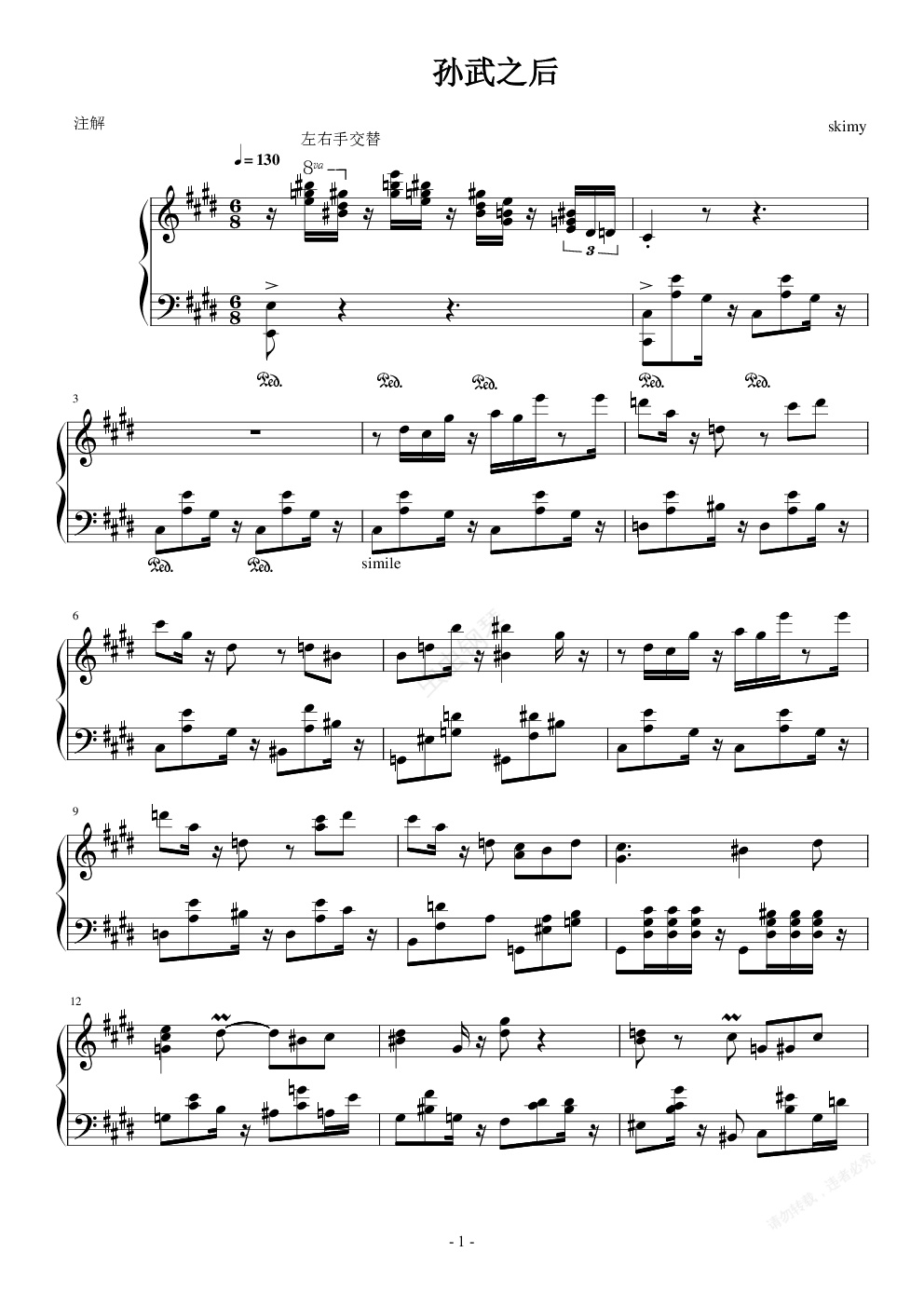 钢琴谱:孙武之后