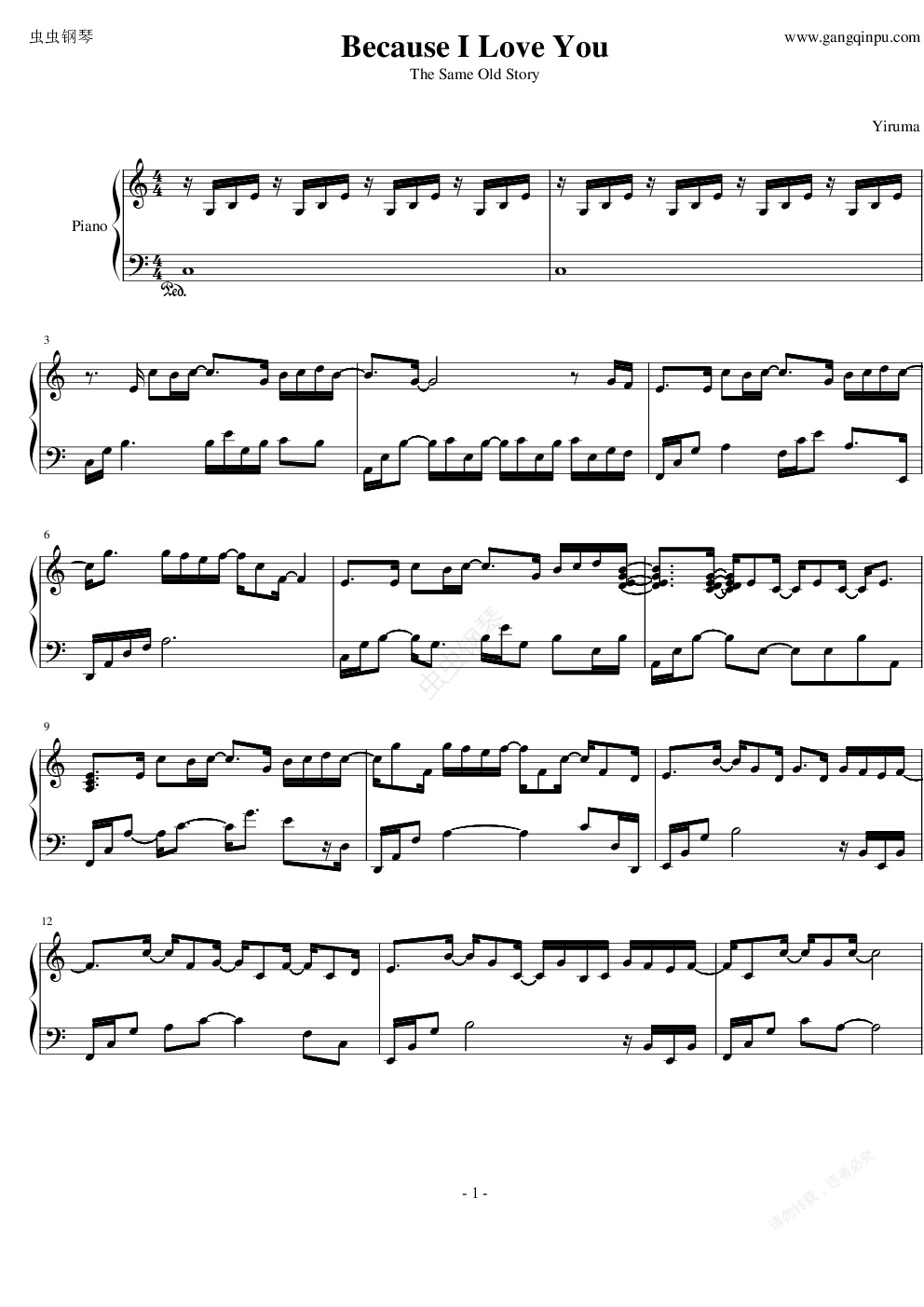 钢琴谱:Because I love you