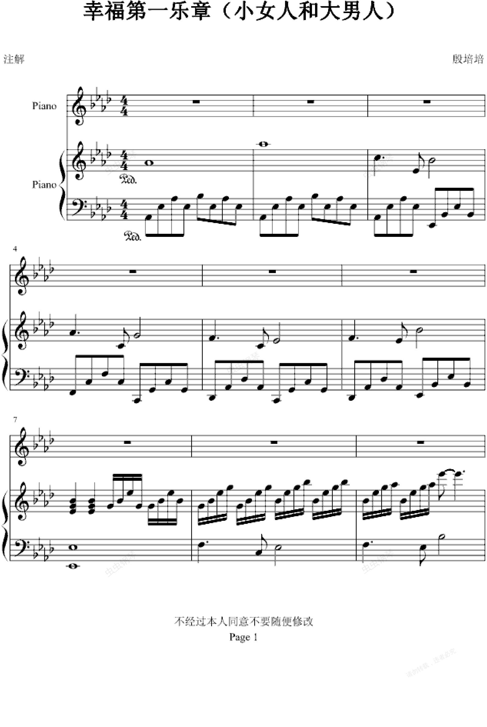 钢琴谱:小女人和大男人