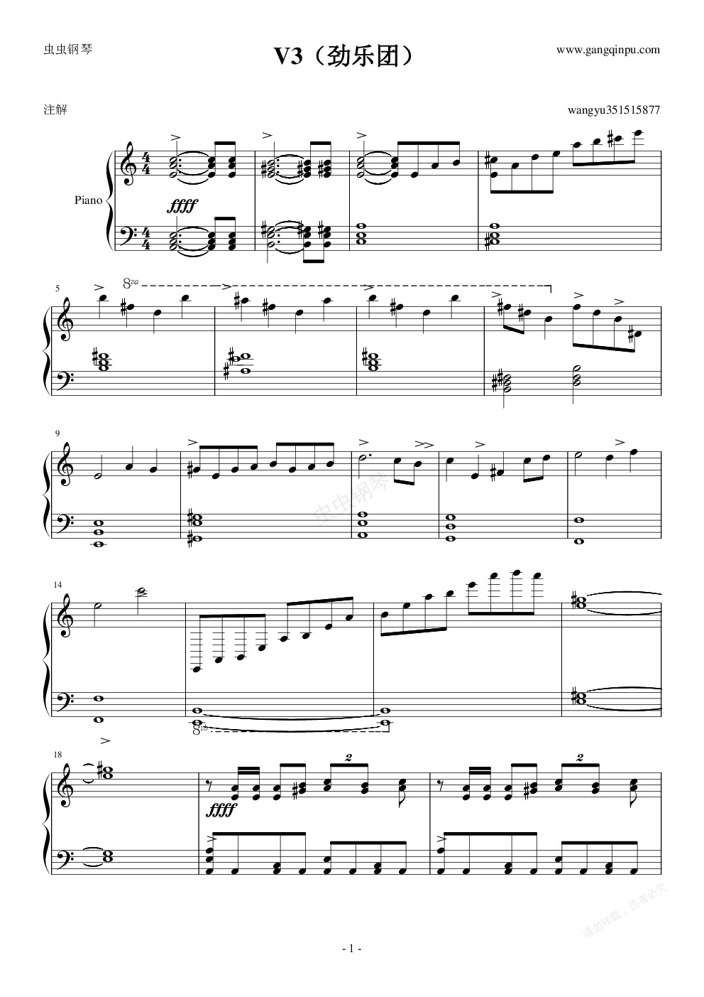 钢琴谱:V3(劲乐团)