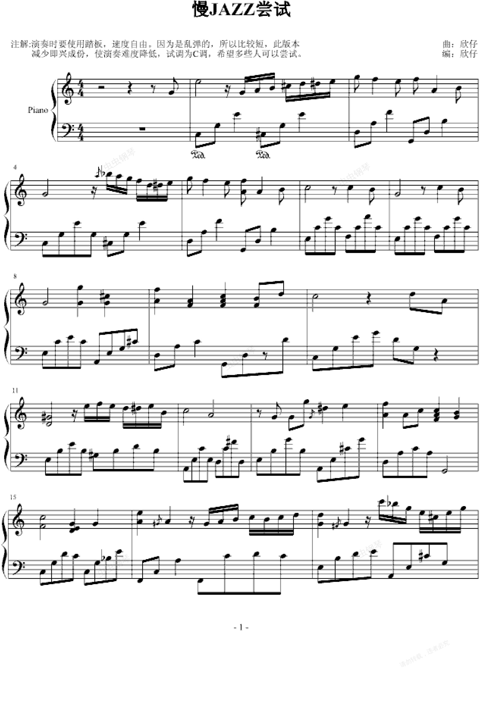 钢琴谱:慢JAZZ尝试