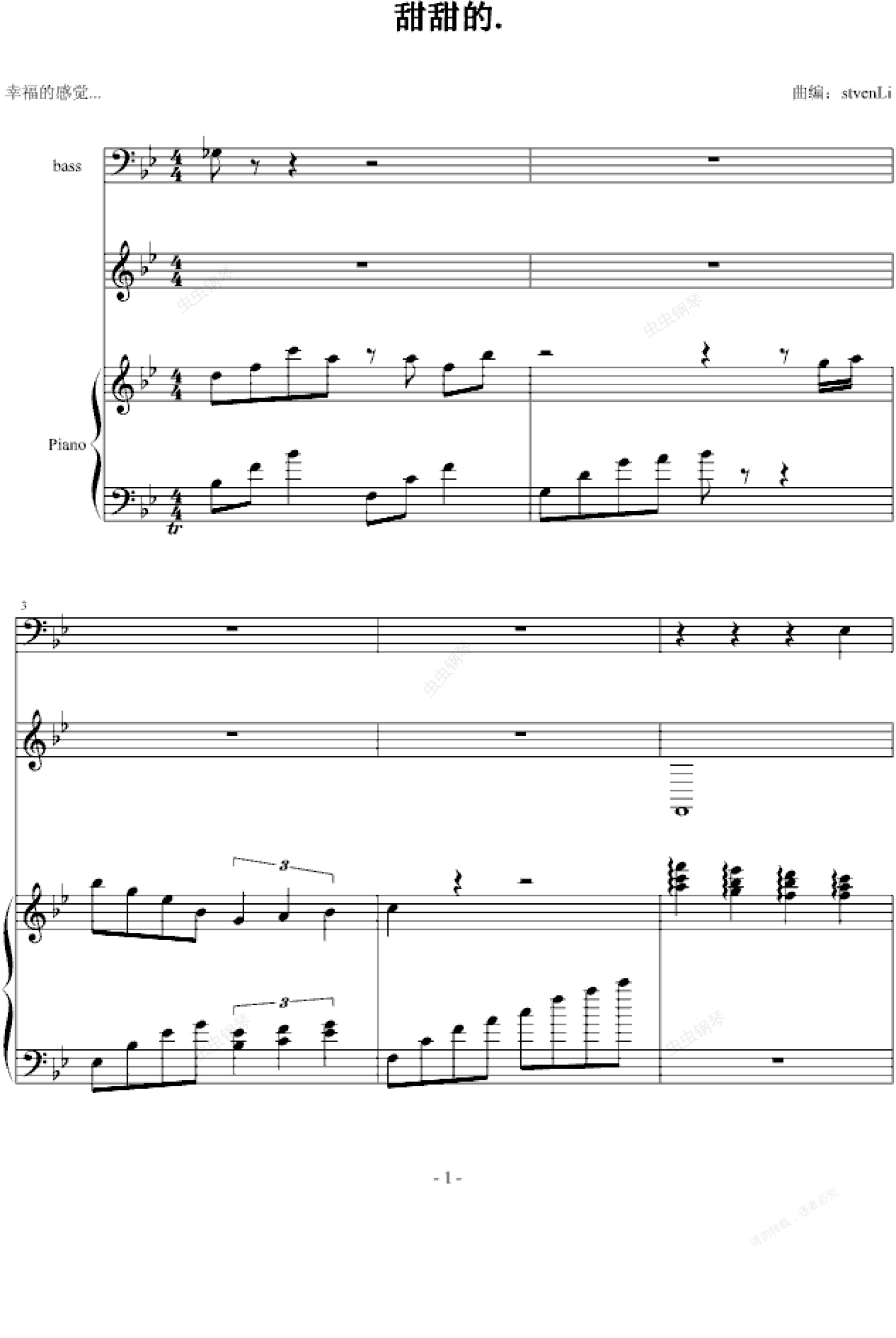 钢琴谱:甜甜的