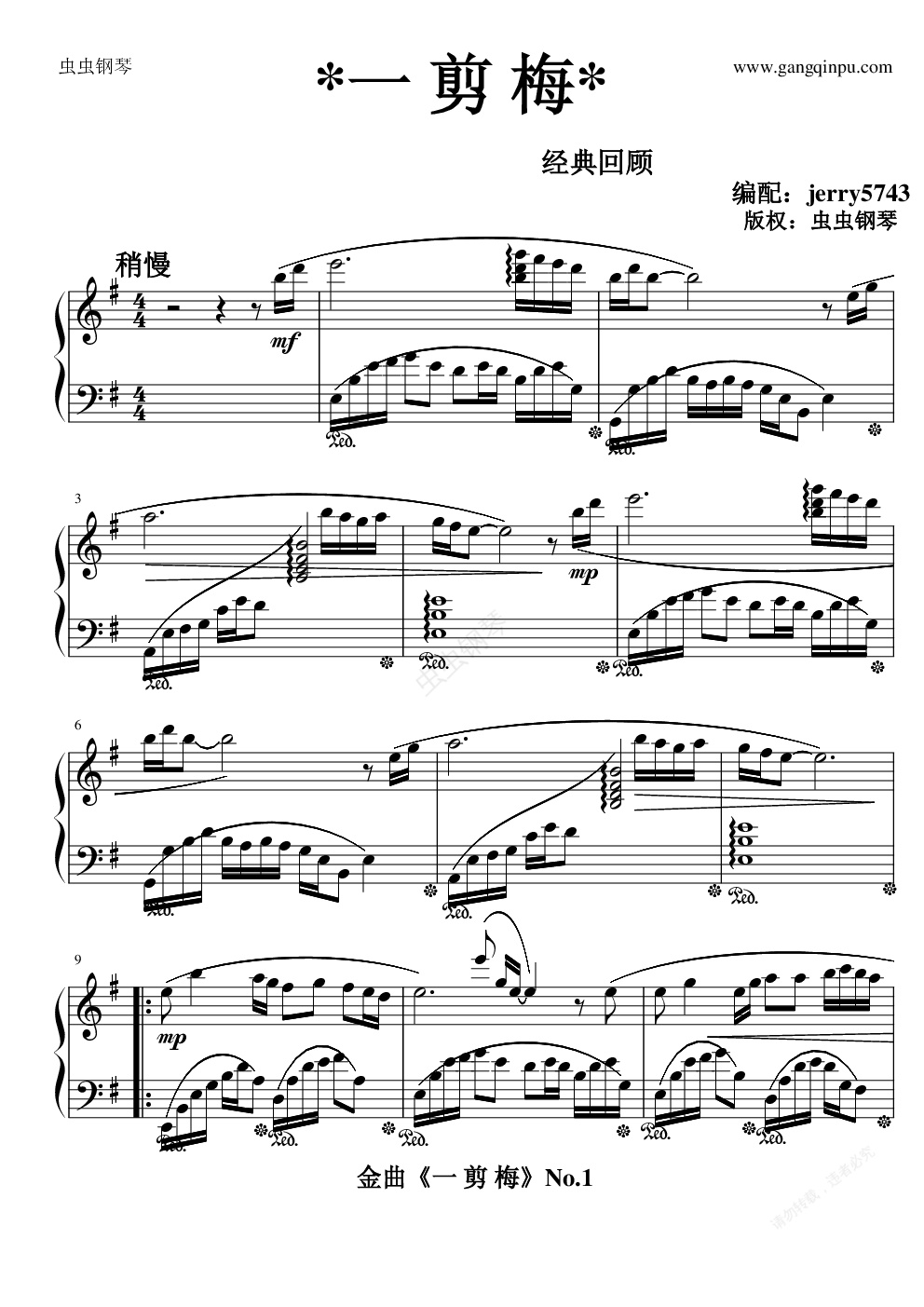 钢琴谱:一剪梅(柔情板)