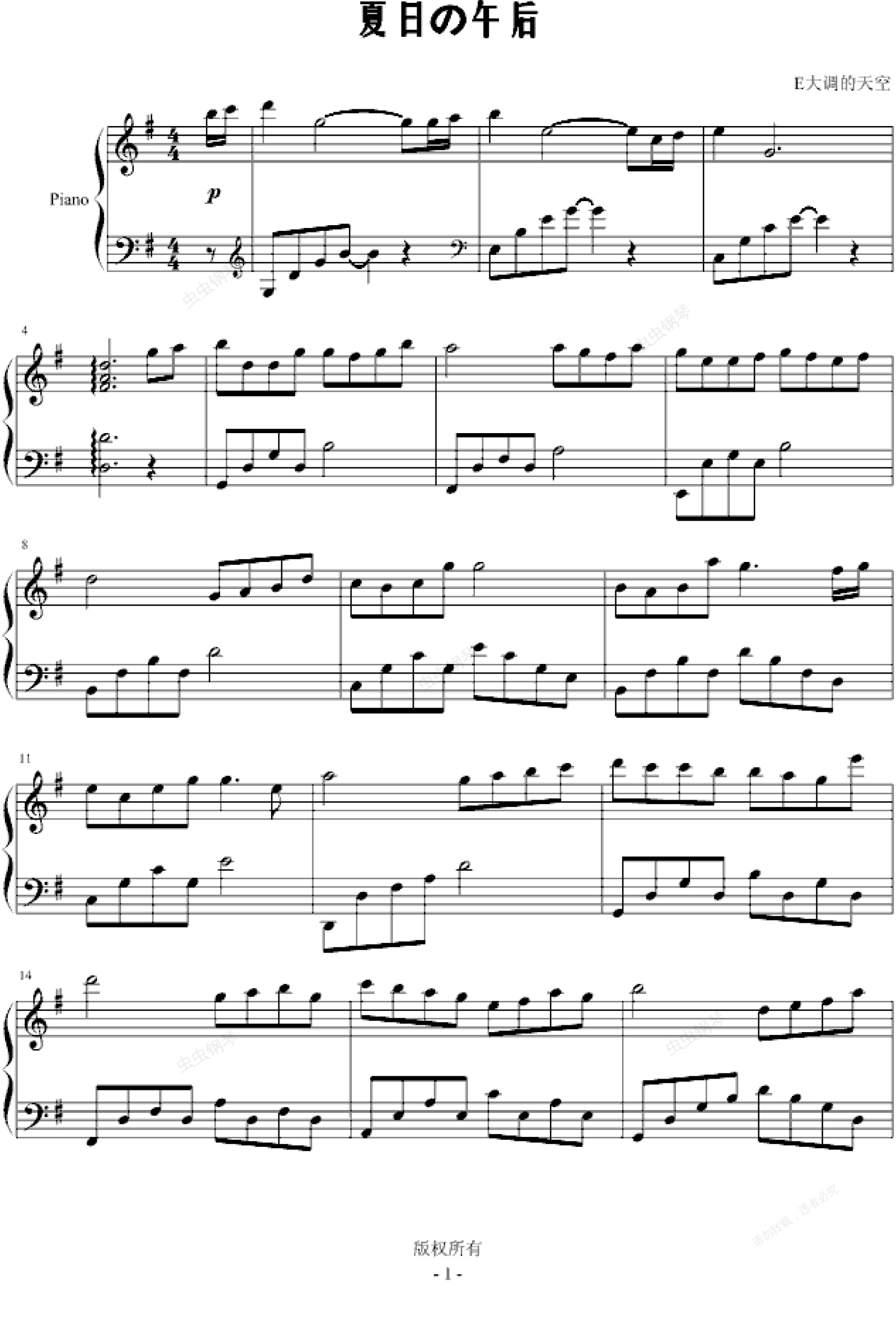钢琴谱:夏日の午后