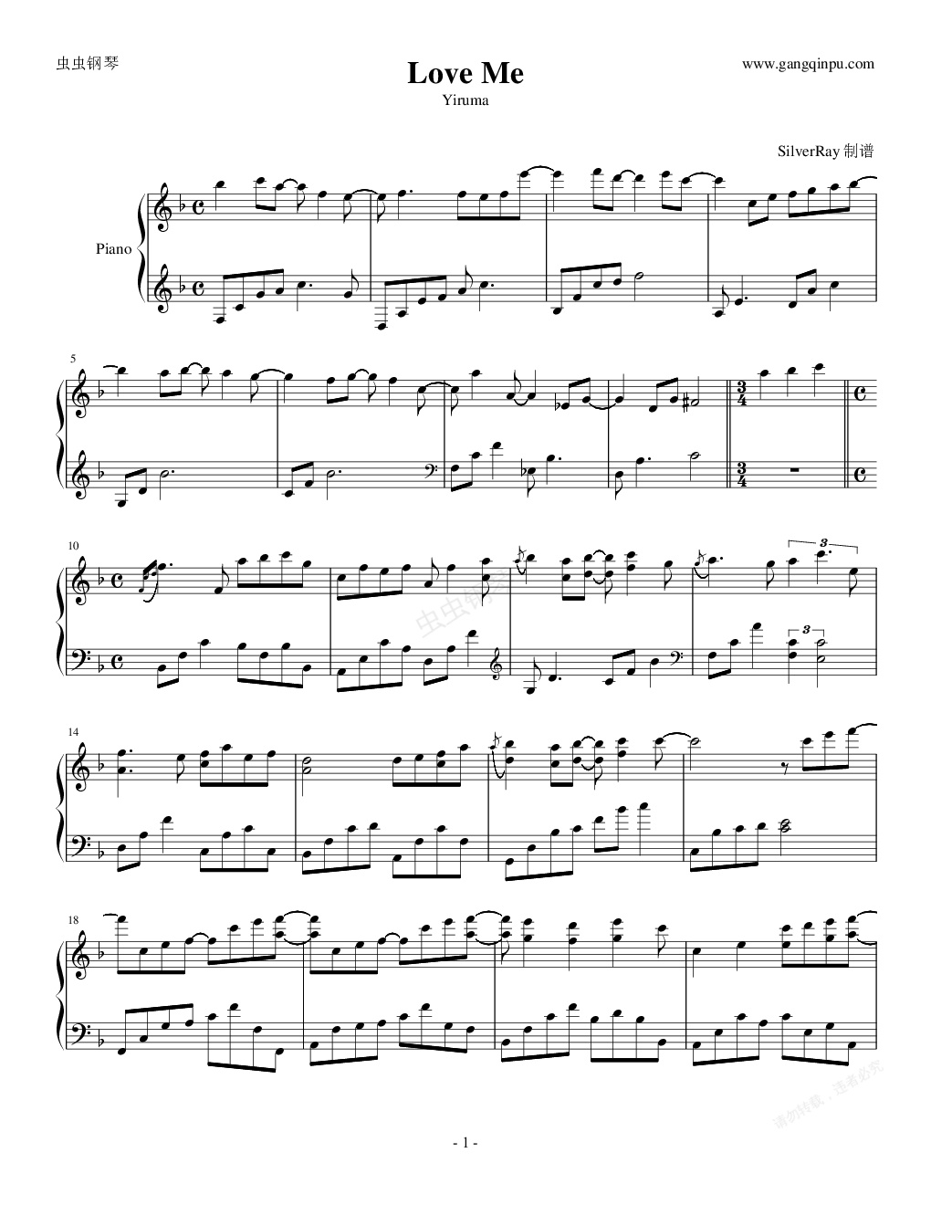 钢琴谱:Love Me-SilverRay版