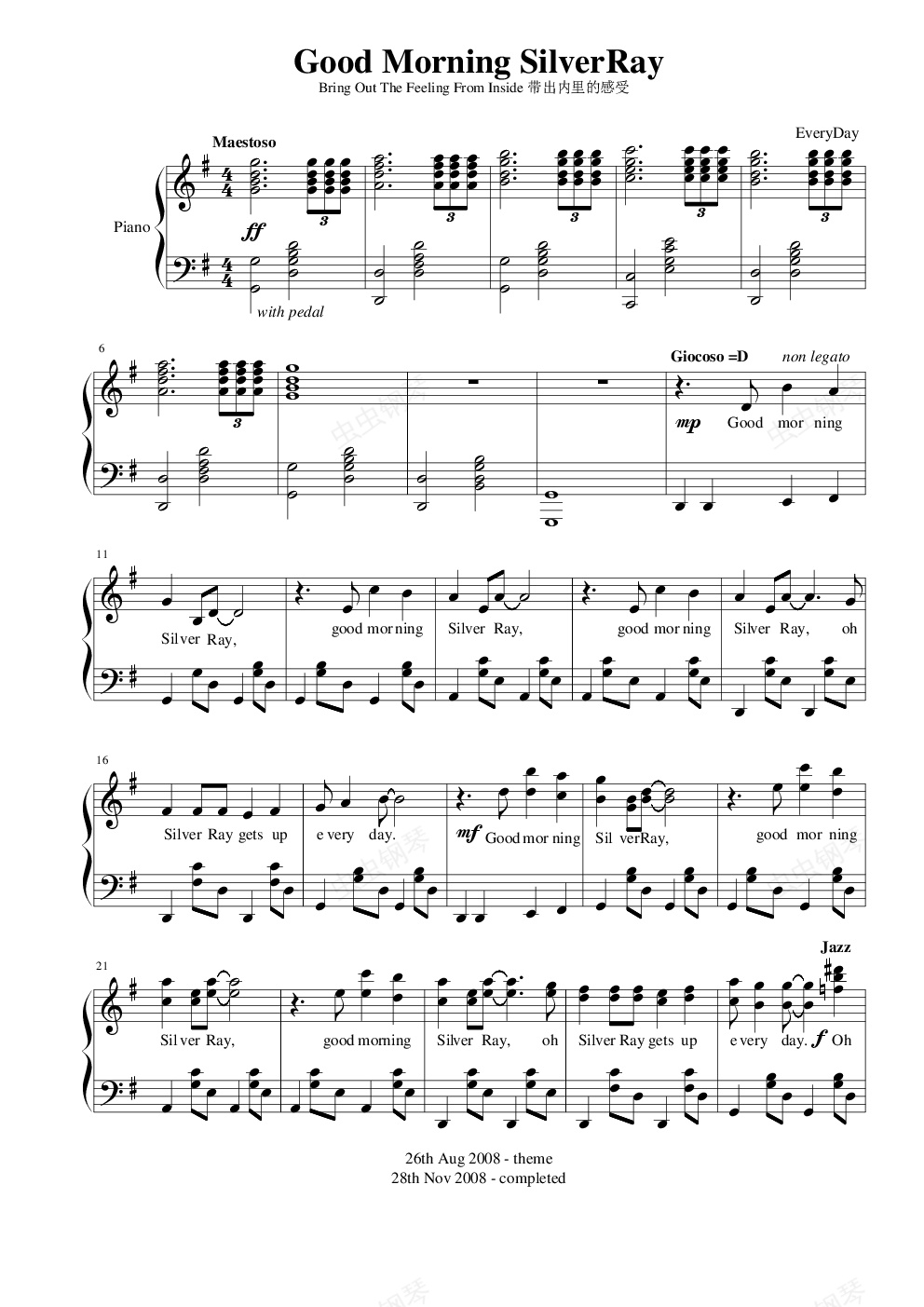 钢琴谱:Good Morning SilverRay