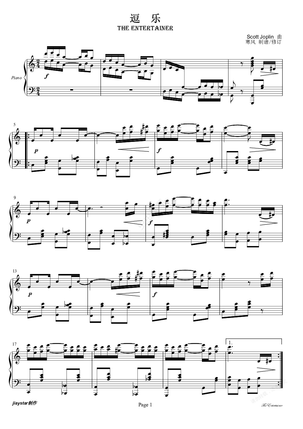 钢琴谱:斯科特·乔普林-逗乐