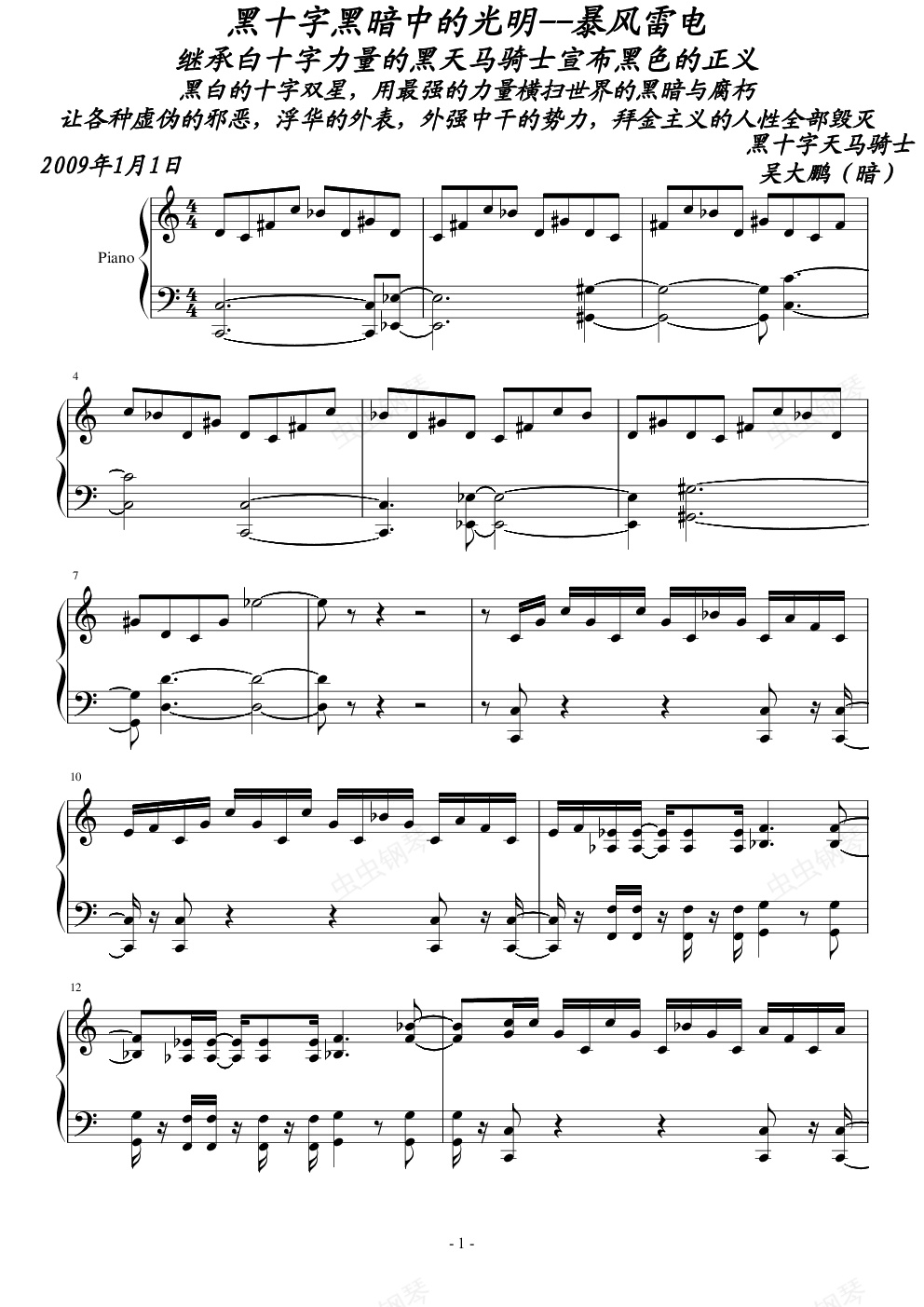 钢琴谱:黑十字天马骑士曲-暴风雷电