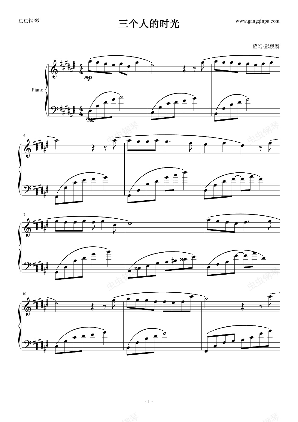 钢琴谱:三个人的时光