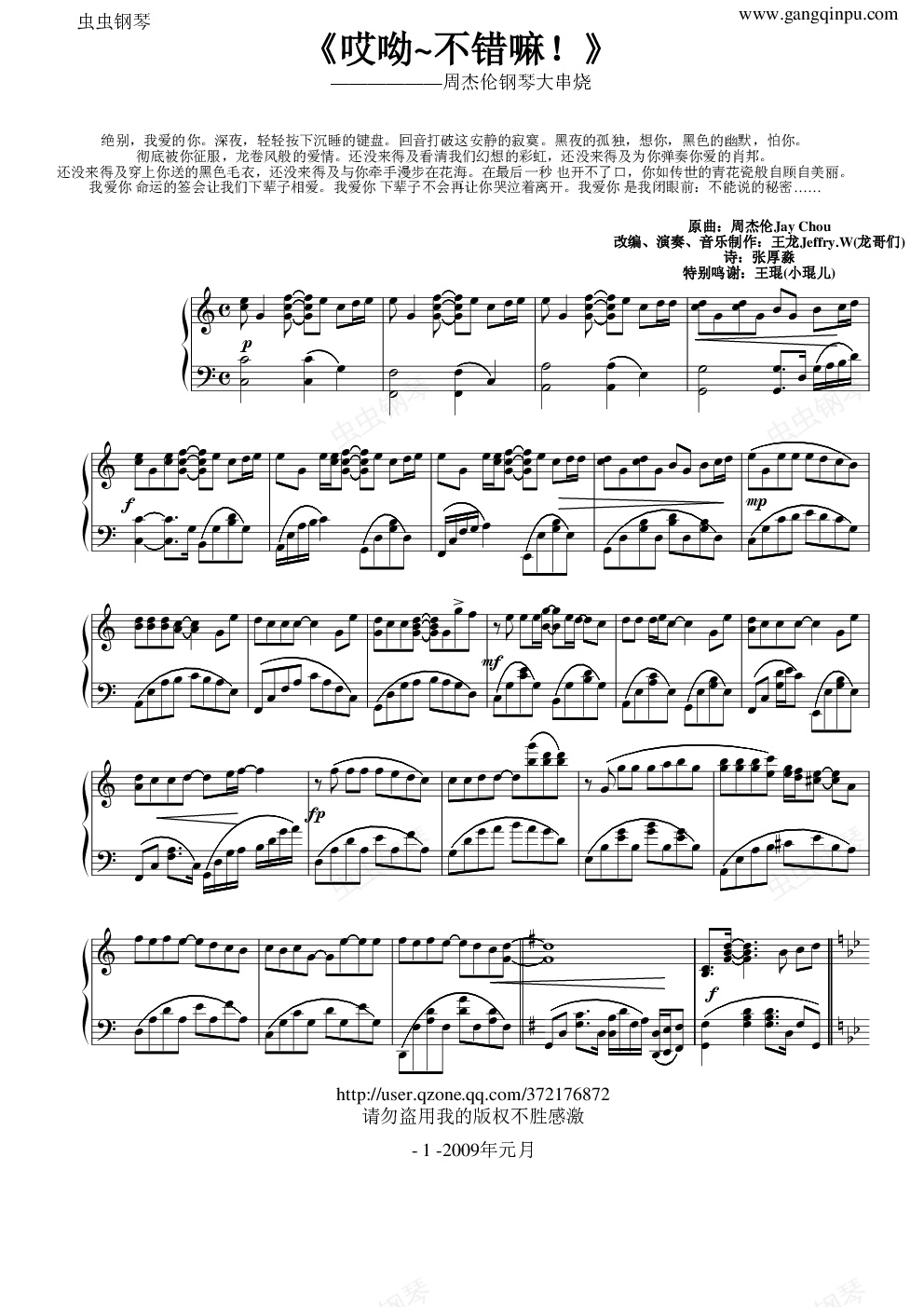 钢琴谱:《哎呦~不错嘛!》周杰伦钢琴大串烧