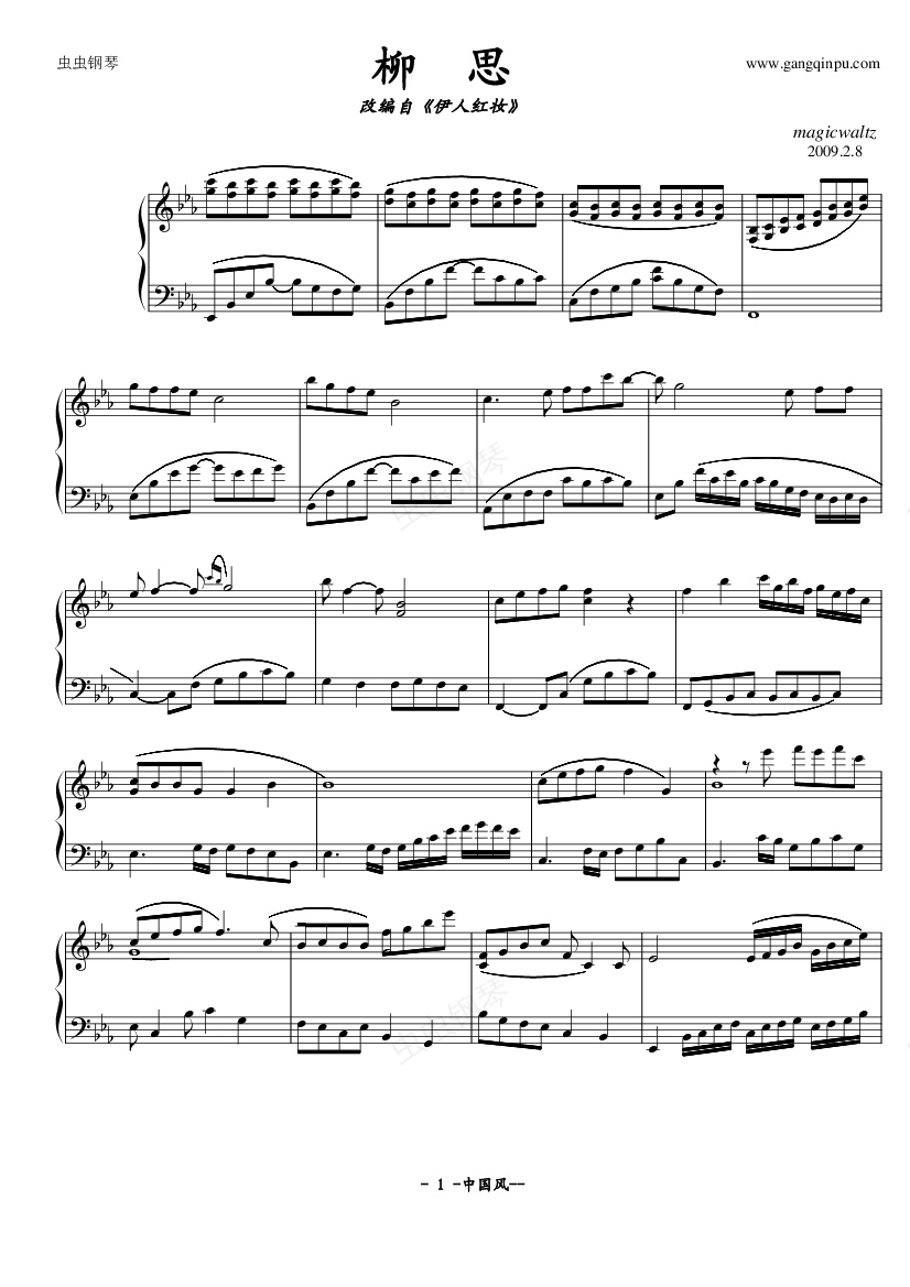 钢琴谱:柳思 钢琴独奏中国风