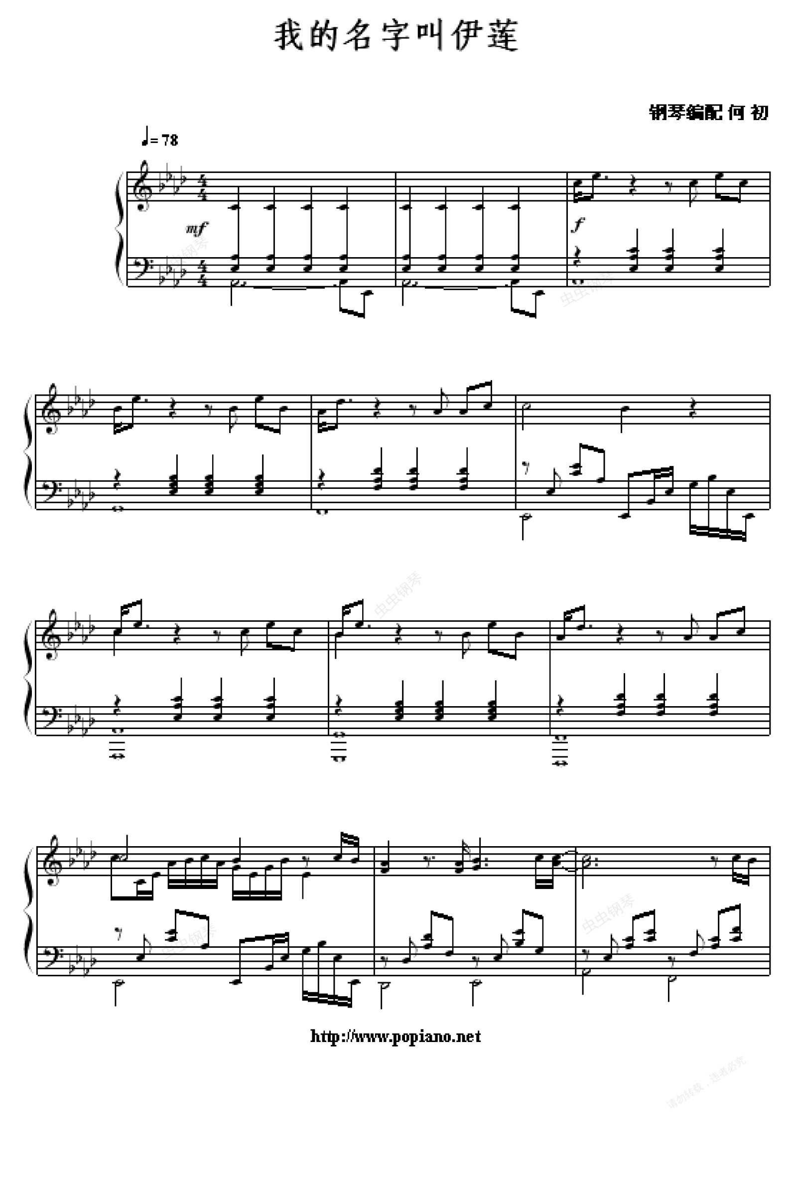 钢琴谱:我的名字叫伊莲