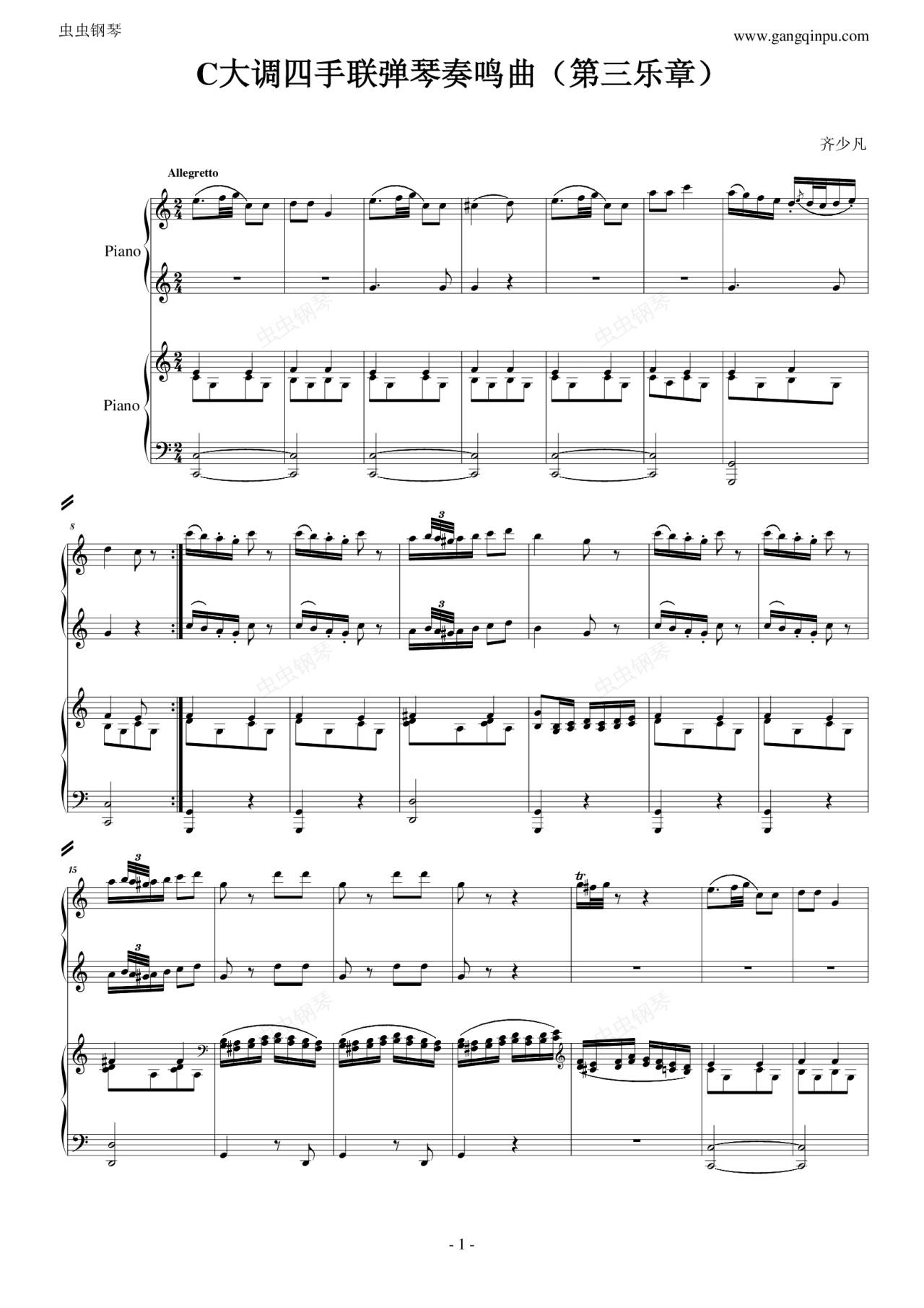 钢琴谱:C大调四手联弹琴奏鸣曲(第三乐章)
