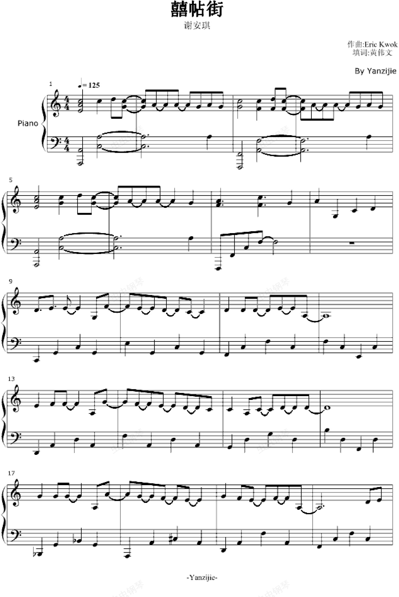 钢琴谱:囍帖街