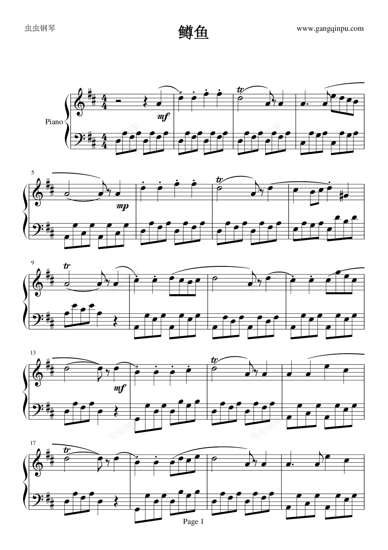钢琴谱:鳟鱼