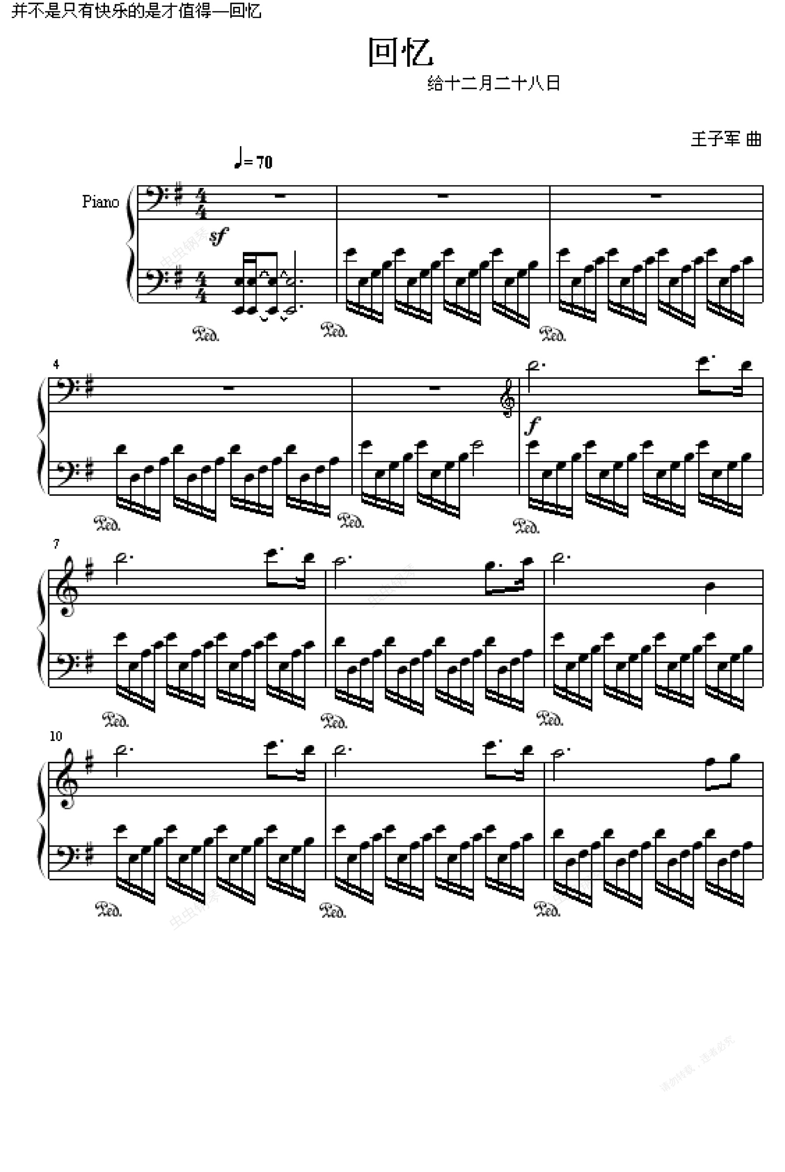 钢琴谱:回忆