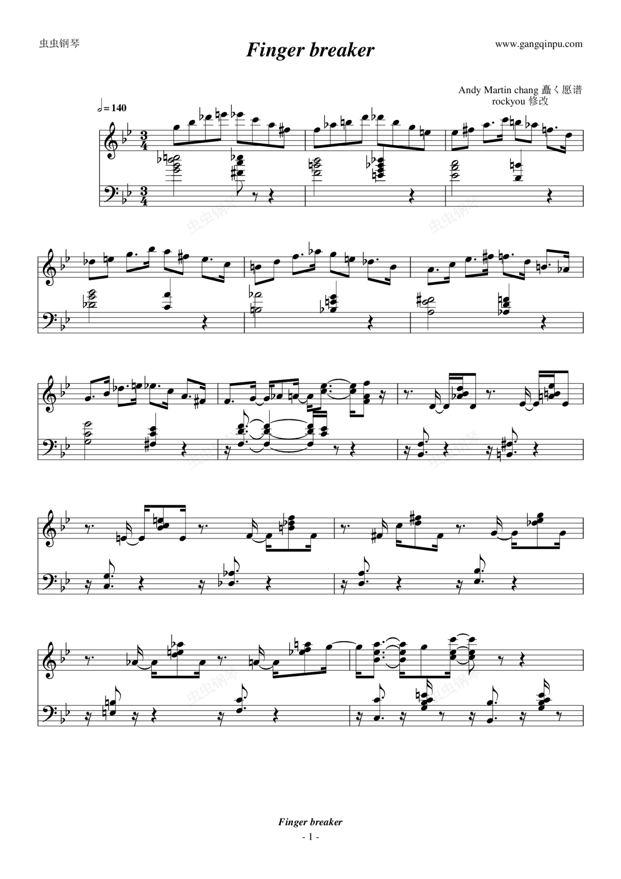 影片中jelly(黑人爵士之王) 斗琴时弹得第三首曲子(第一首就是Big Foot Ham, 第二首是The Crave),第三首就是 了--也就是他最绝的杀手锏。本想把BIG FOOT HAM 和 THE CRAVE 也都上传上来,发现被上传N次了,就只上传了这个谱子。我建议大家看一看就是了,也佩服那些拿去练得人的荆轲般的勇气(我连了三天第一页和都没和下来), 嘻嘻……(*^__^*)