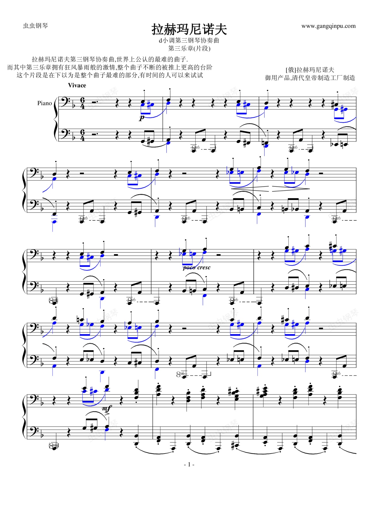 钢琴谱:世界上最难的曲子,拉三(片段)