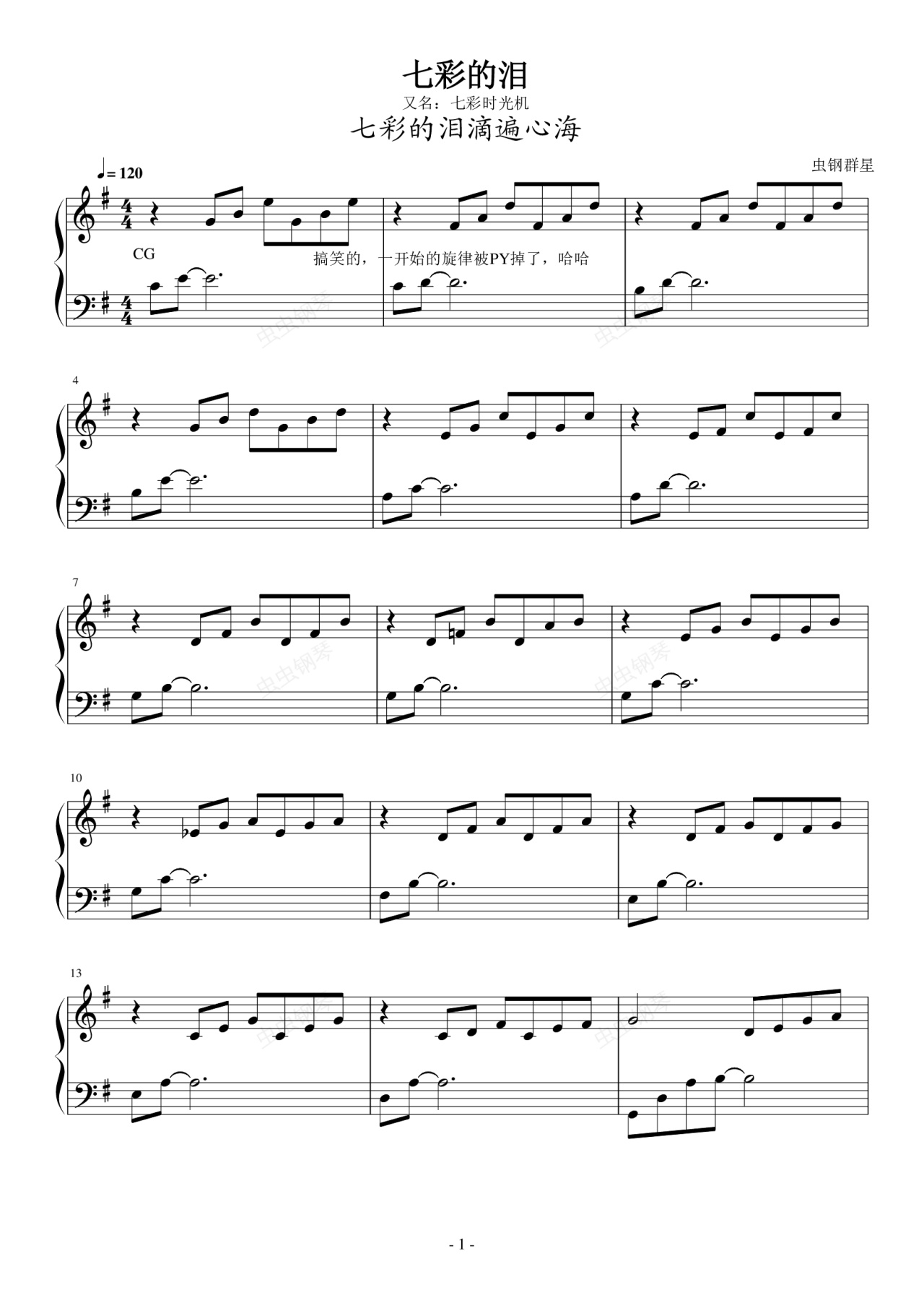 钢琴谱:七彩的泪