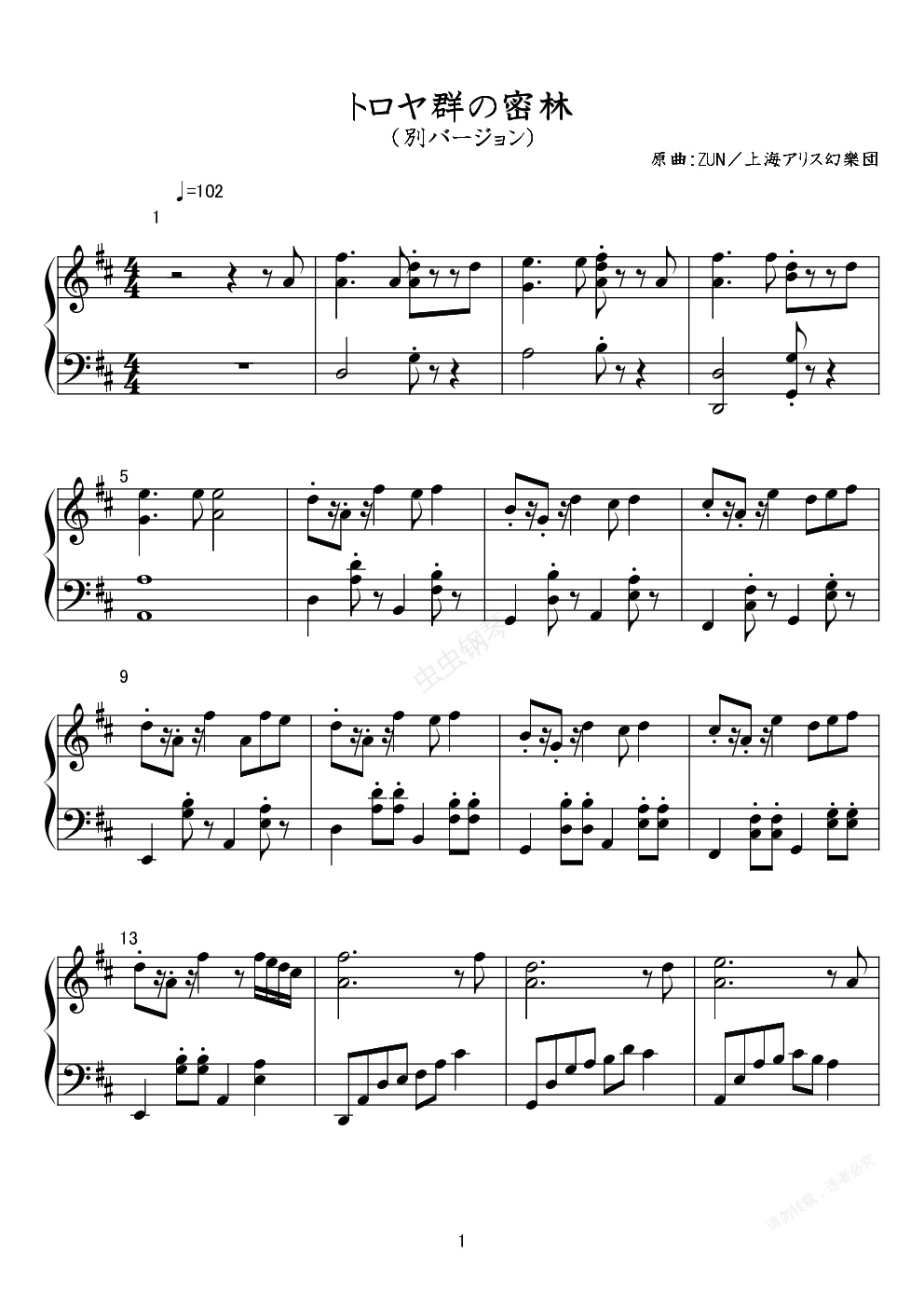 钢琴谱:【东方曲再编】特洛伊群的密林